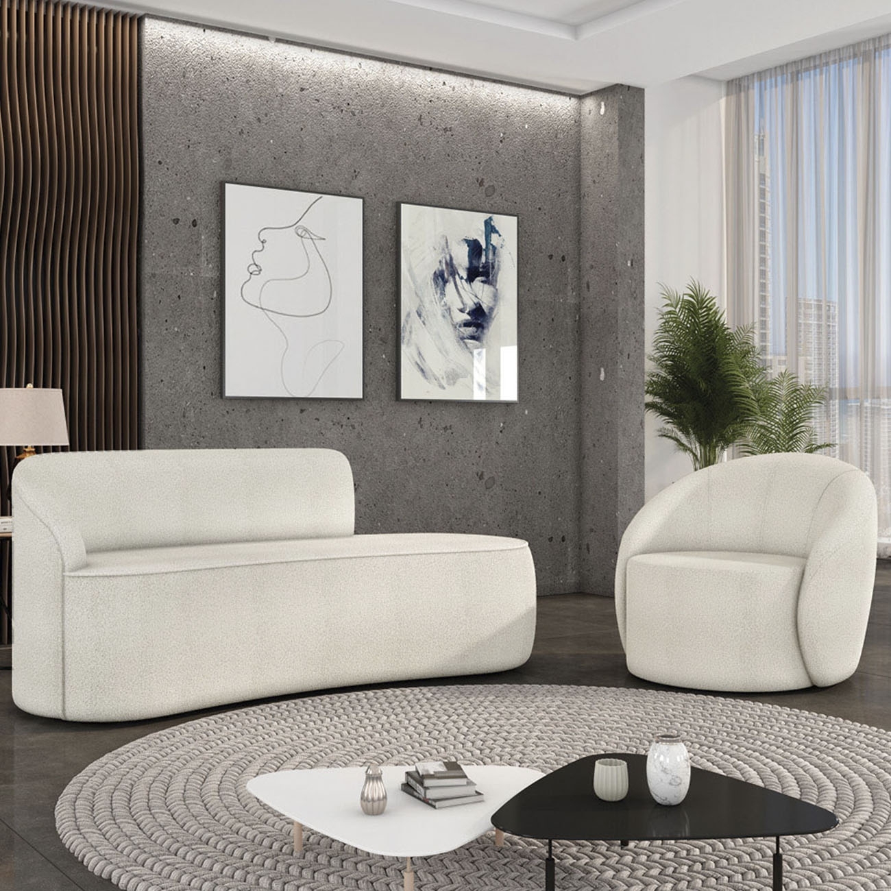 Sofá 2 Lugares 140cm Wendi e Poltrona Steve Boucle Off White I01 - Mpozenato