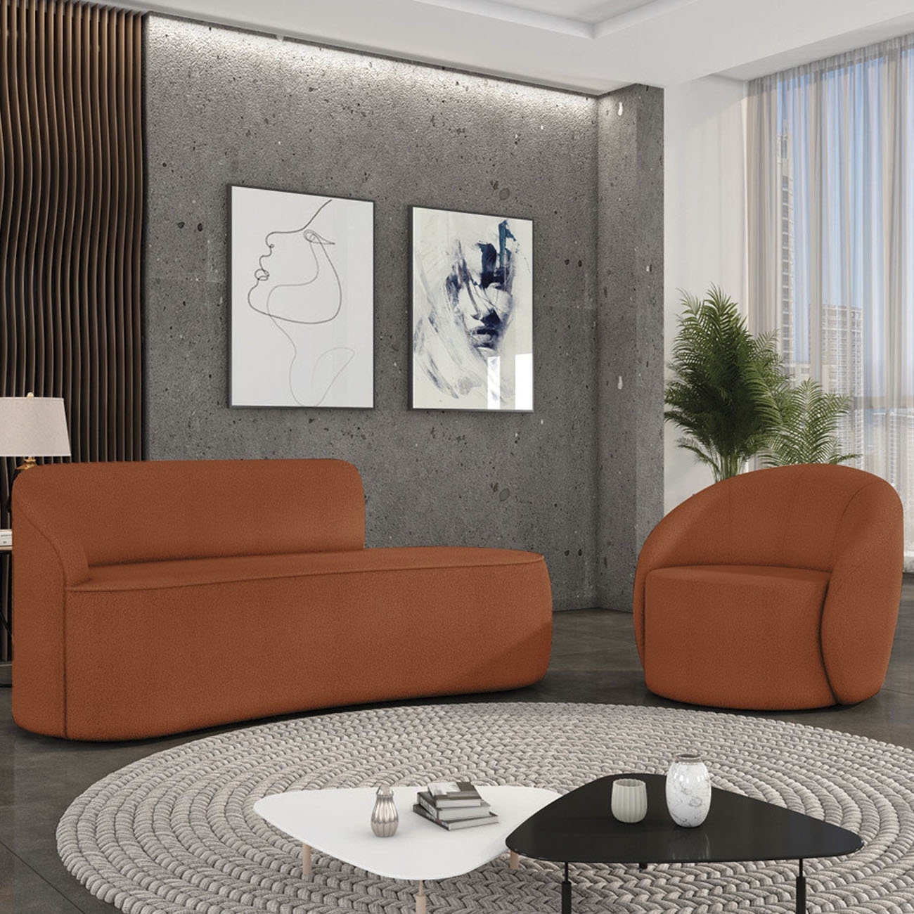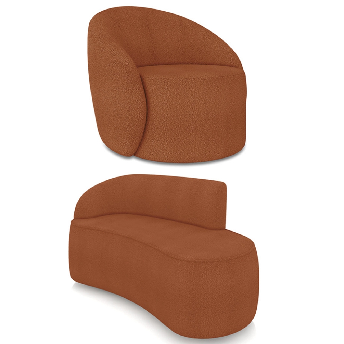 Sofá 2 Lugares 140cm Wendi e Poltrona Steve Boucle Terracota I01 - Mpozenato