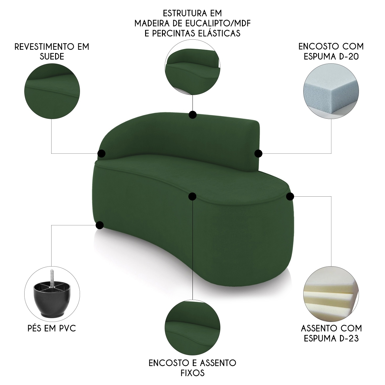 Densidade da Espuma: Assento D-23/Encosto D-20.
