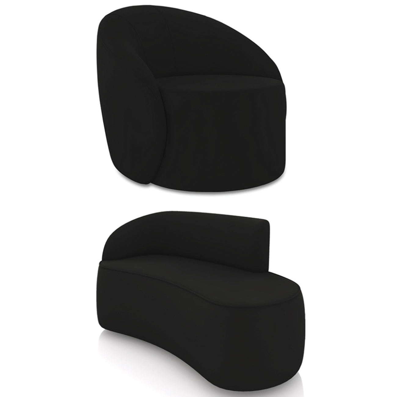 Sofá 2 Lugares 140cm Wendi e Poltrona Steve Veludo Preto I01 - Mpozenato