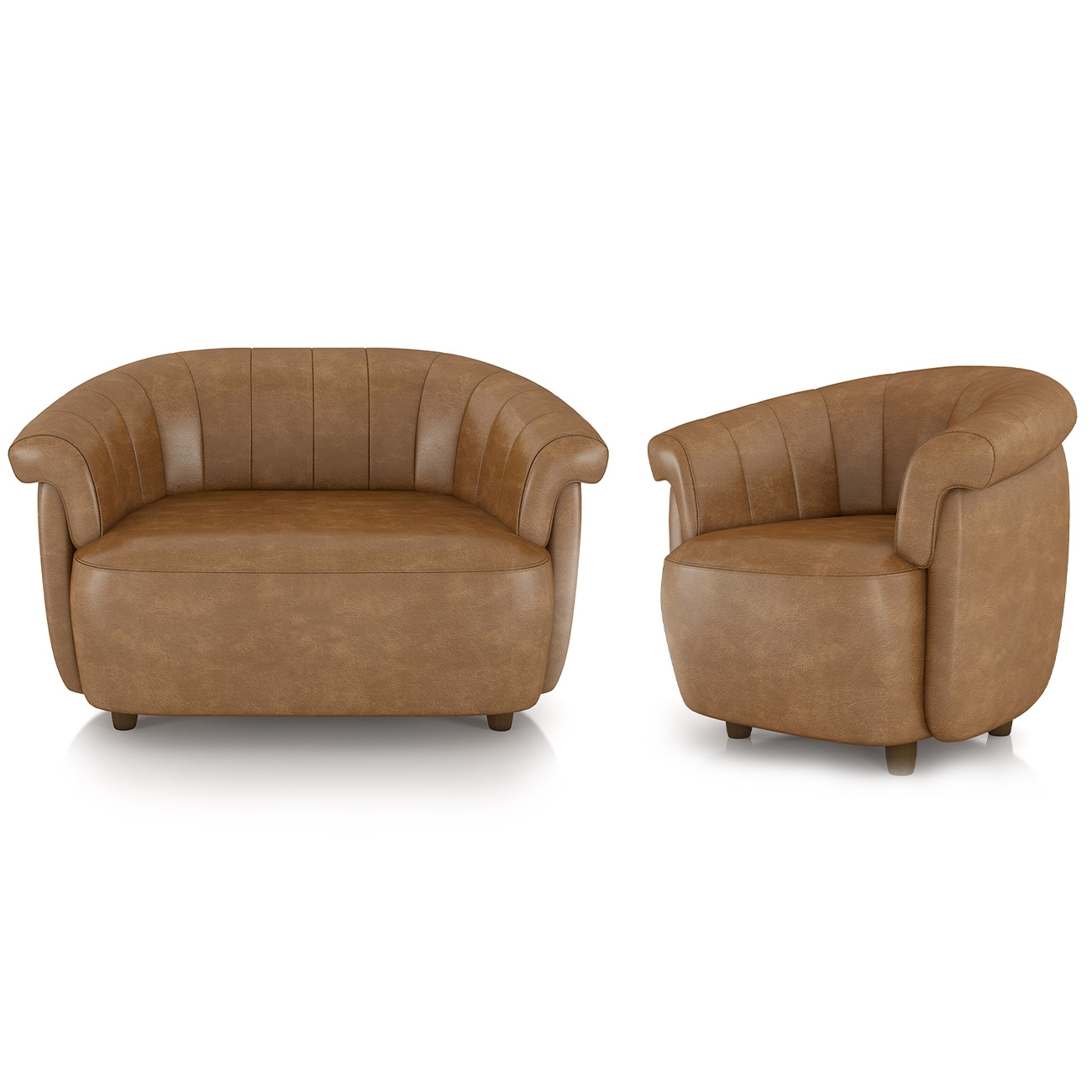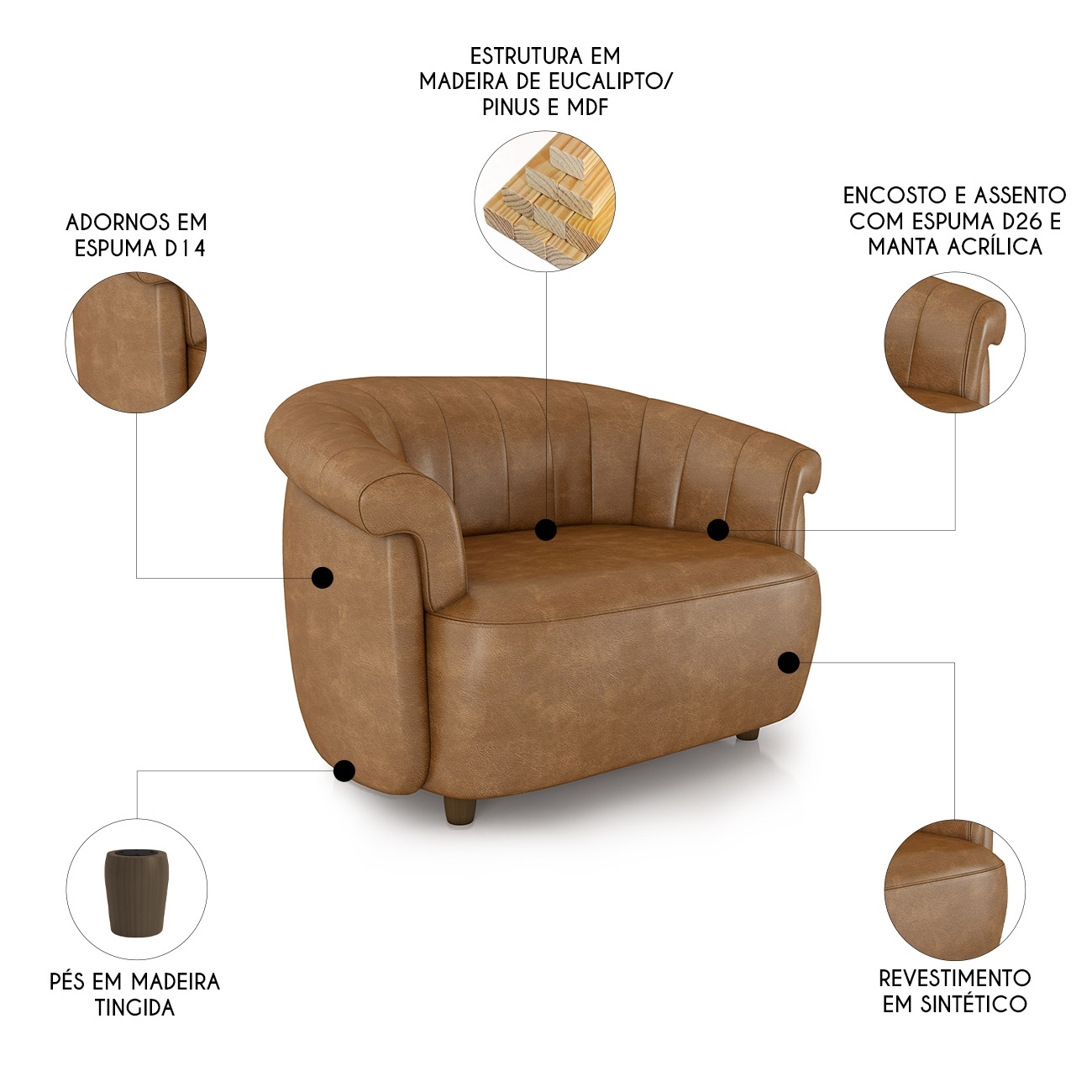 Sofá 2 Lugares 150cm e Poltrona Lykan Sintético Caramelo Z32 - Mpozenato
