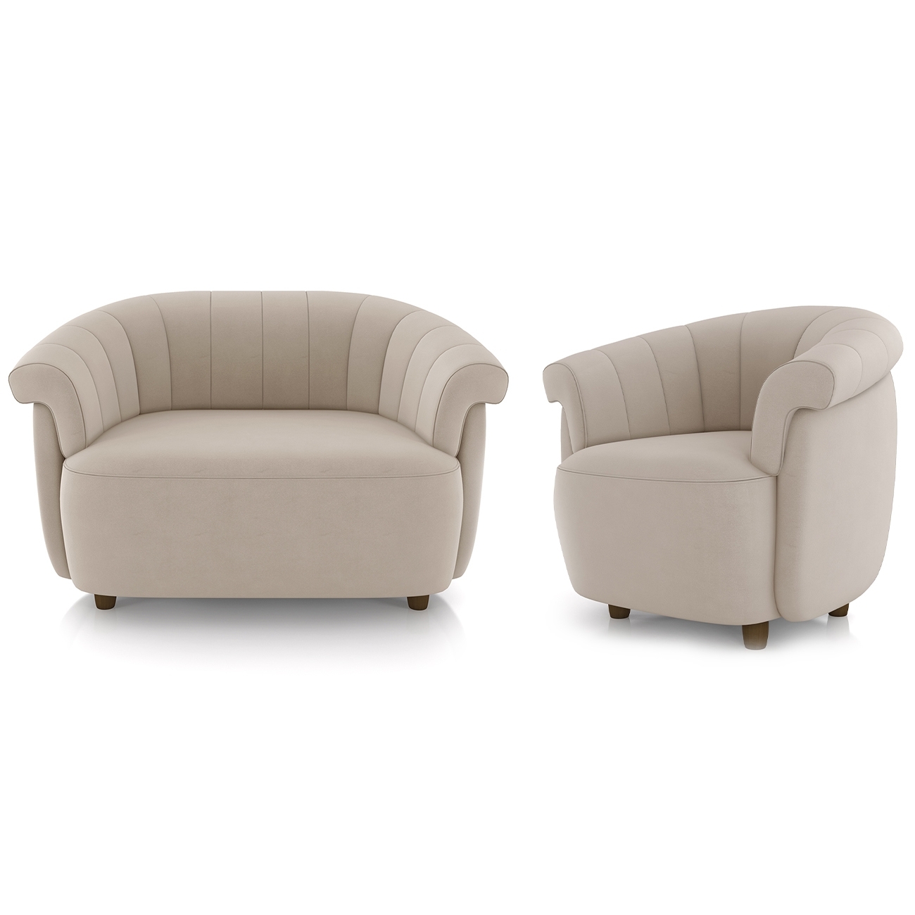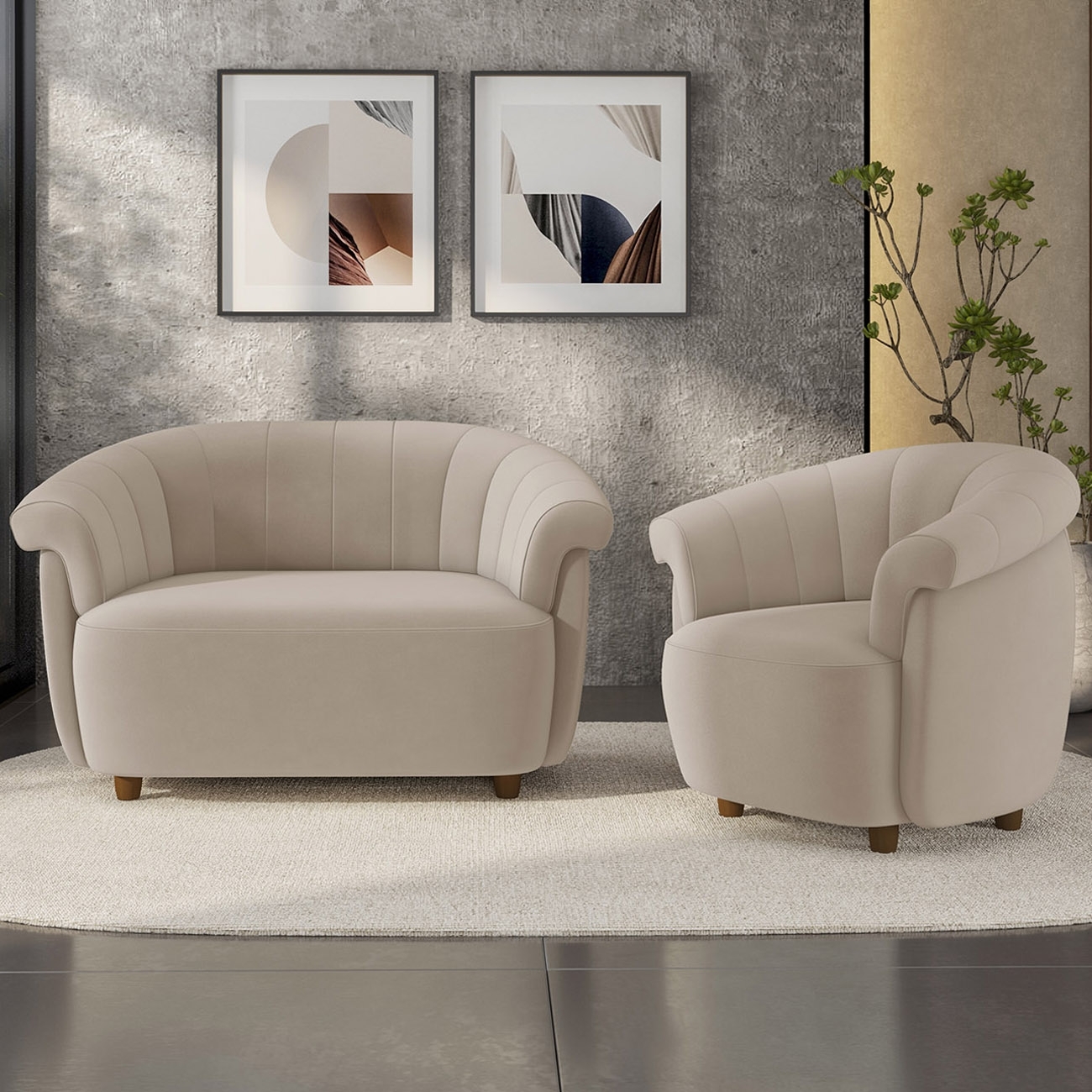 Sofá 2 Lugares 150cm e Poltrona Lykan Veludo Bege Z32 - Mpozenato