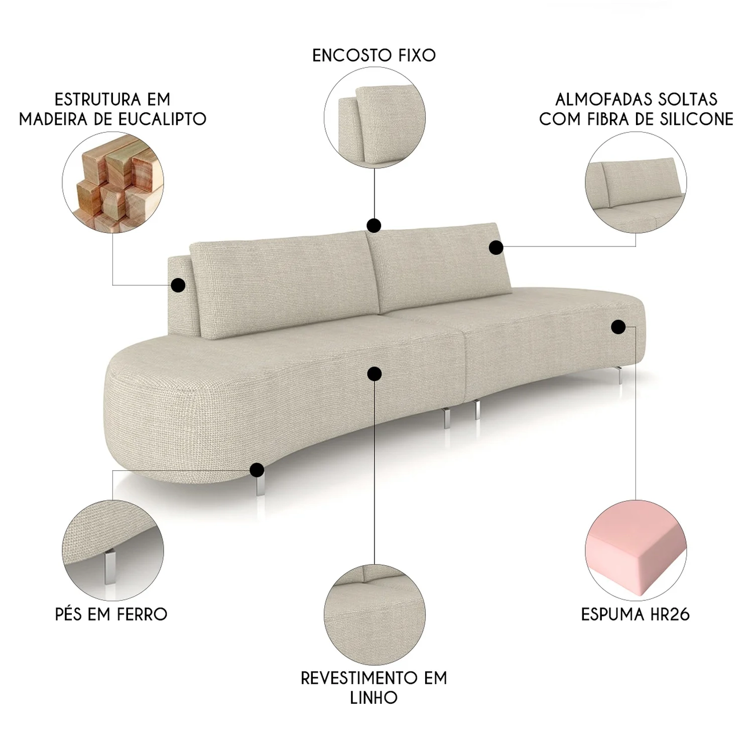 Versátil, esse Sofá se adapta a diversos estilos de decoração. Os pés em ferro reforçam a estabilidade da peça e complementam o design com um toque natural e acolhedor.