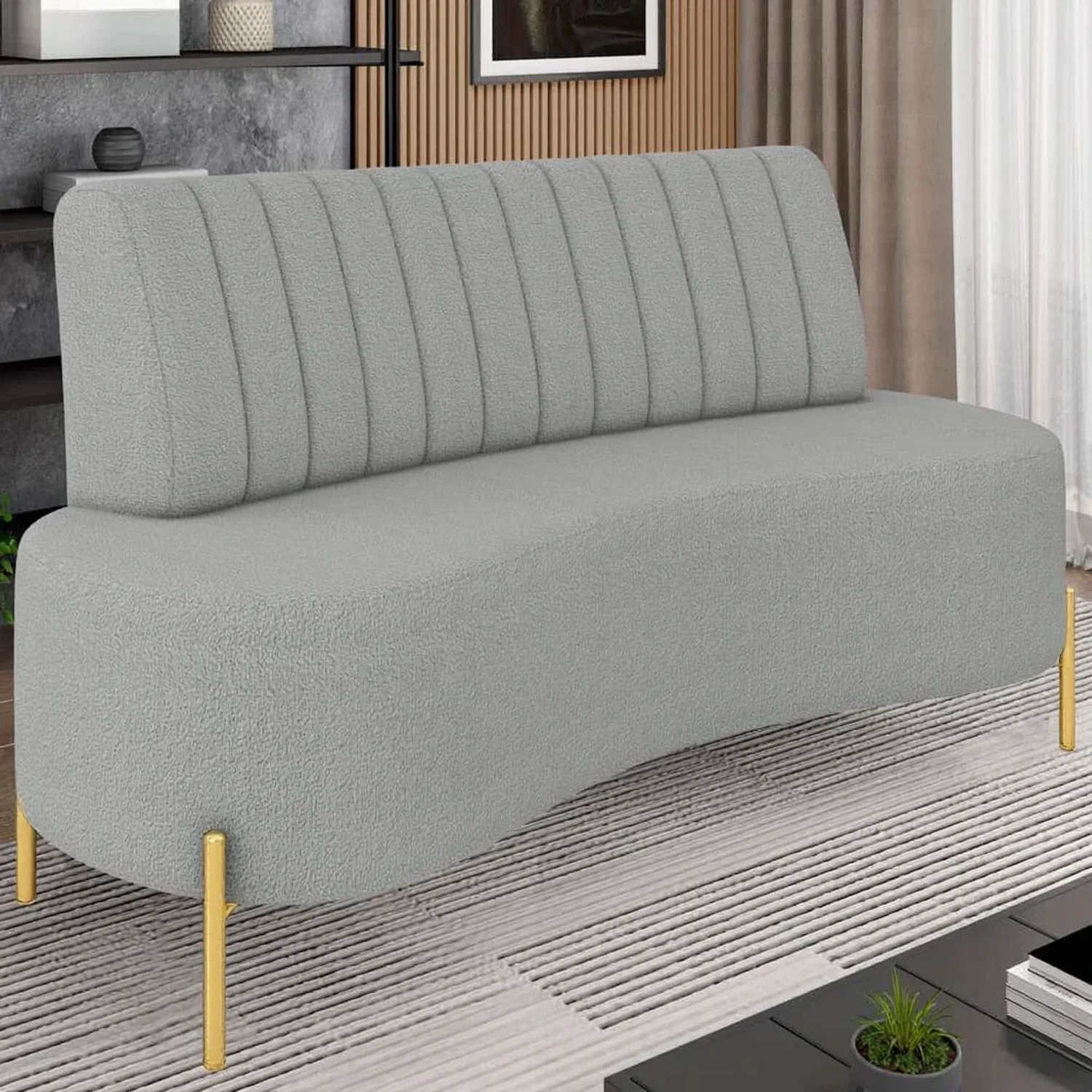 Sofá 2 Lugares 160cm Pés Aço Dourado Tamar Boucle Cinza Z08 - Mpozenato