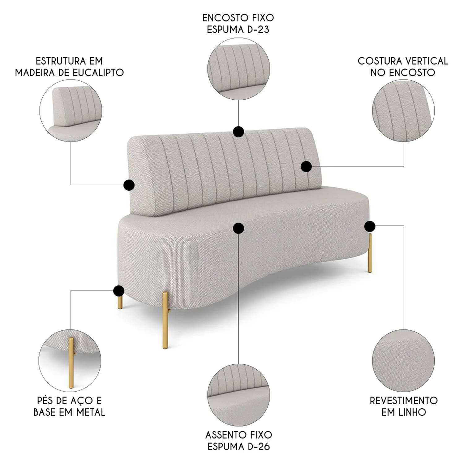 Sofá 2 Lugares 160cm Pés Aço Dourado Tamar Linho Areia Z08 - Mpozenato