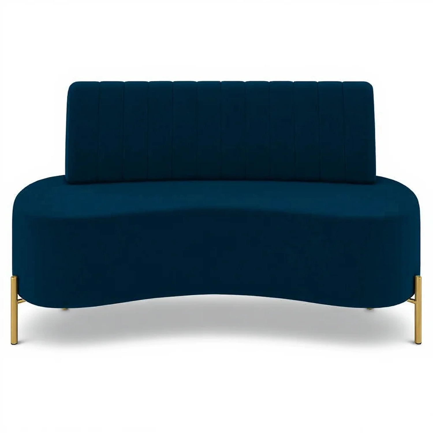 Sofá 2 Lugares 160cm Pés Aço Dourado Tamar Veludo Azul Z08 - Mpozenato