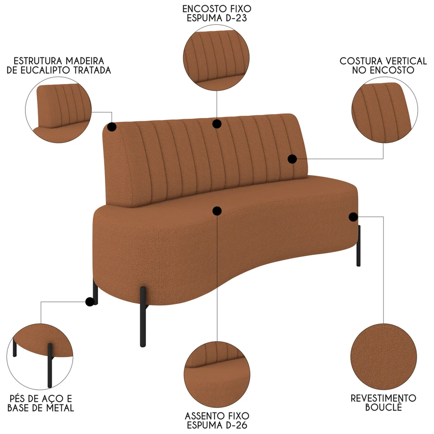 O Sofá 2 Lugares 160cm Pés Aço Preto Tamar Z08 Boucle Terracota, da Mpozenato é a escolha ideal para quem busca um móvel que combina estilo e funcionalidade.