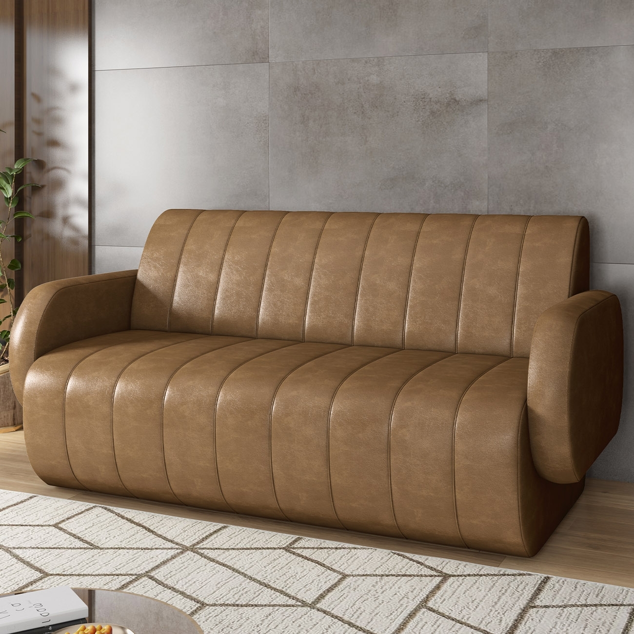 Sofá 2 Lugares 188cm Sala de Estar Munik Sintético Camel Z08 - Mpozenato