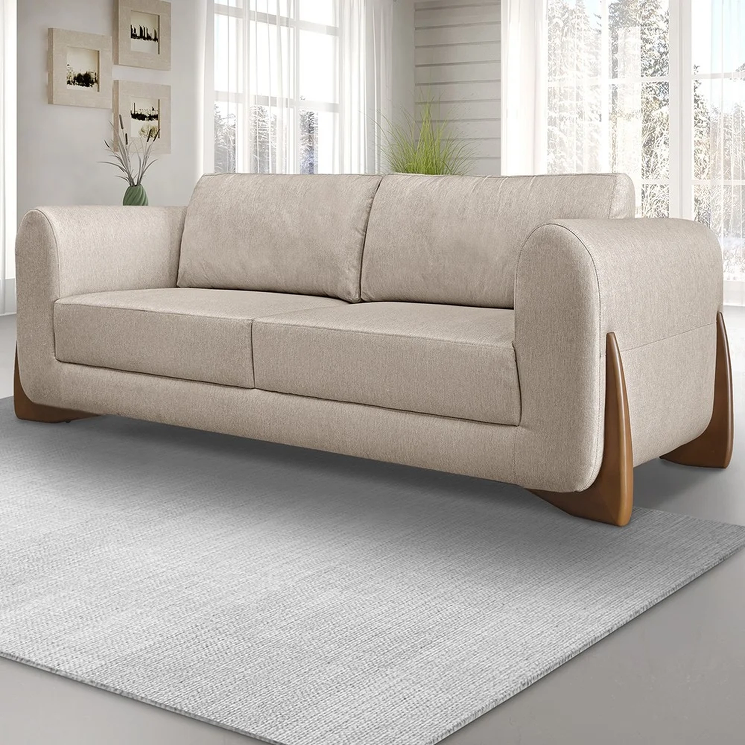 O Sofá 2 Lugares Base de Madeira 160cm Izzy S06 Linho Areia, da Mpozenato é uma expressão de conforto e elegância, projetada para ser mais do que um simples assento.