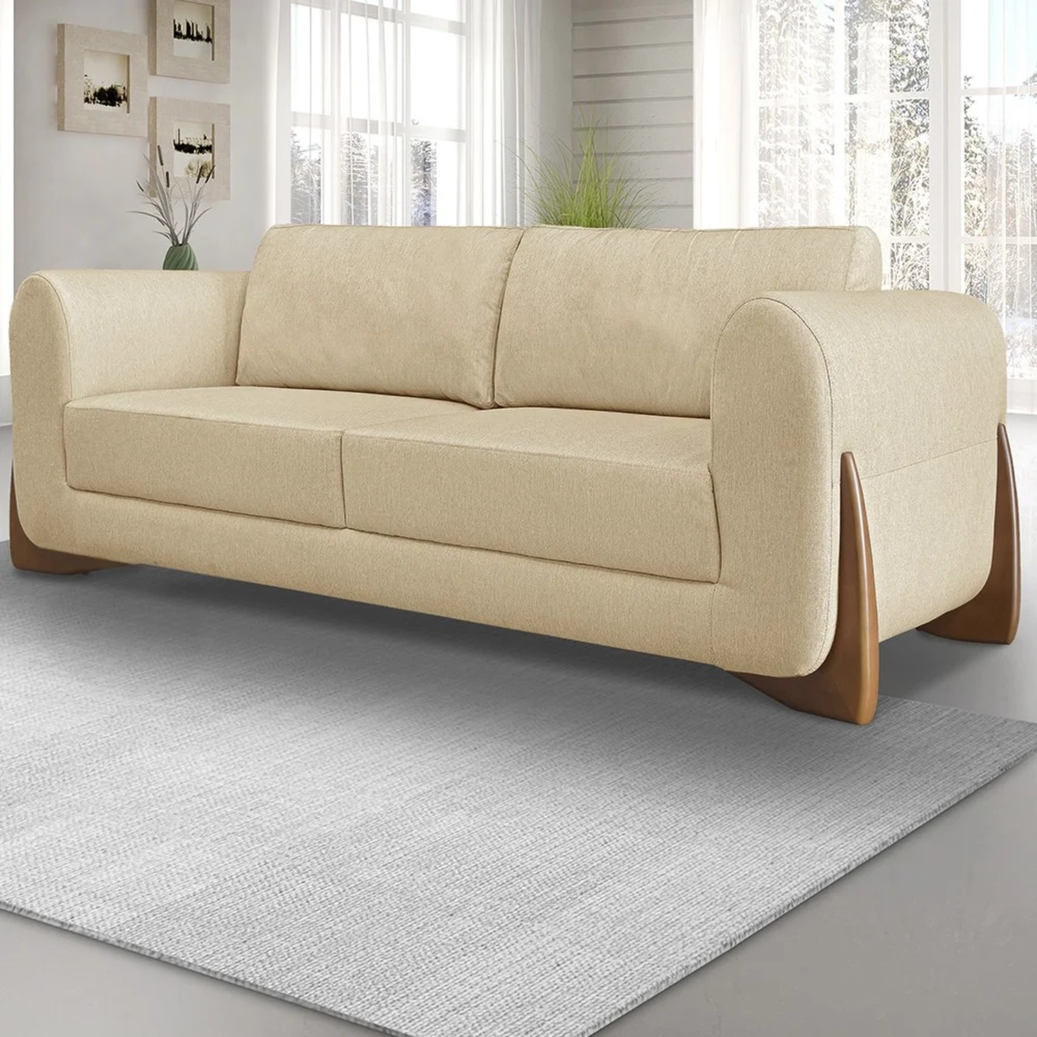 O Sofá 2 Lugares Base de Madeira 180cm Izzy S06 Linho Dourado, da Mpozenato é uma expressão de conforto e elegância, projetada para ser mais do que um simples assento.