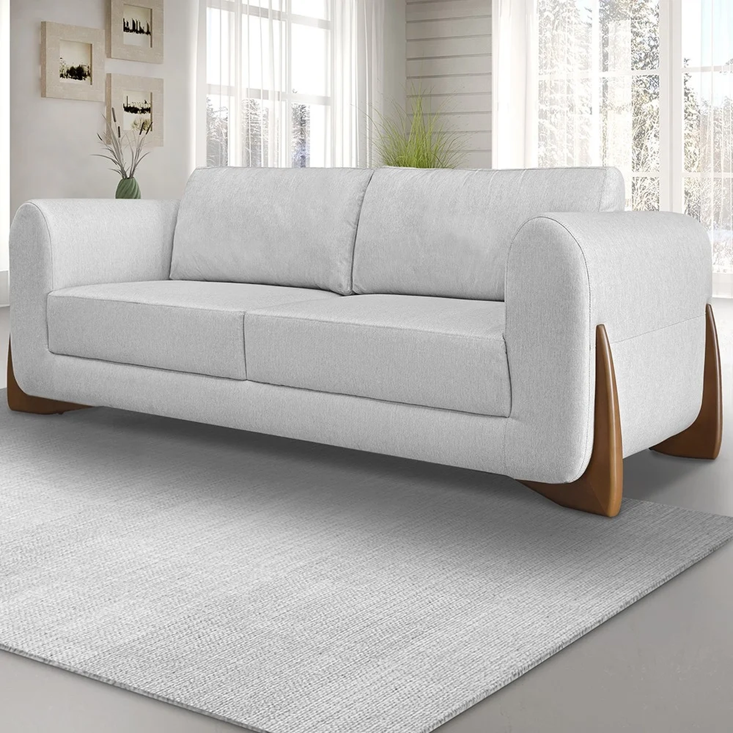 O Sofá Living é revestido em linho de alta qualidade, proporcionando uma textura agradável ao toque. Os pés do sofá são um destaque à parte, com acabamento em madeira de jequitibá, conhecida por sua durabilidade e beleza natural. A estrutura é feita de madeira maciça de eucalipto, garantindo resistência e durabilidade. O assento é em espuma HR28, complementada por plumante em silicone, oferecendo um equilíbrio perfeito entre suporte e maciez. O design dos pés em formato boomerang, com 8 cm de altura na cor mel, adiciona um toque retro-moderno à peça. Este Sofá 2 Lugares não é apenas um móvel, mas uma peça de decoração que reflete sofisticação e um padrão de acabamento de alto nível para a sua Sala de Estar.