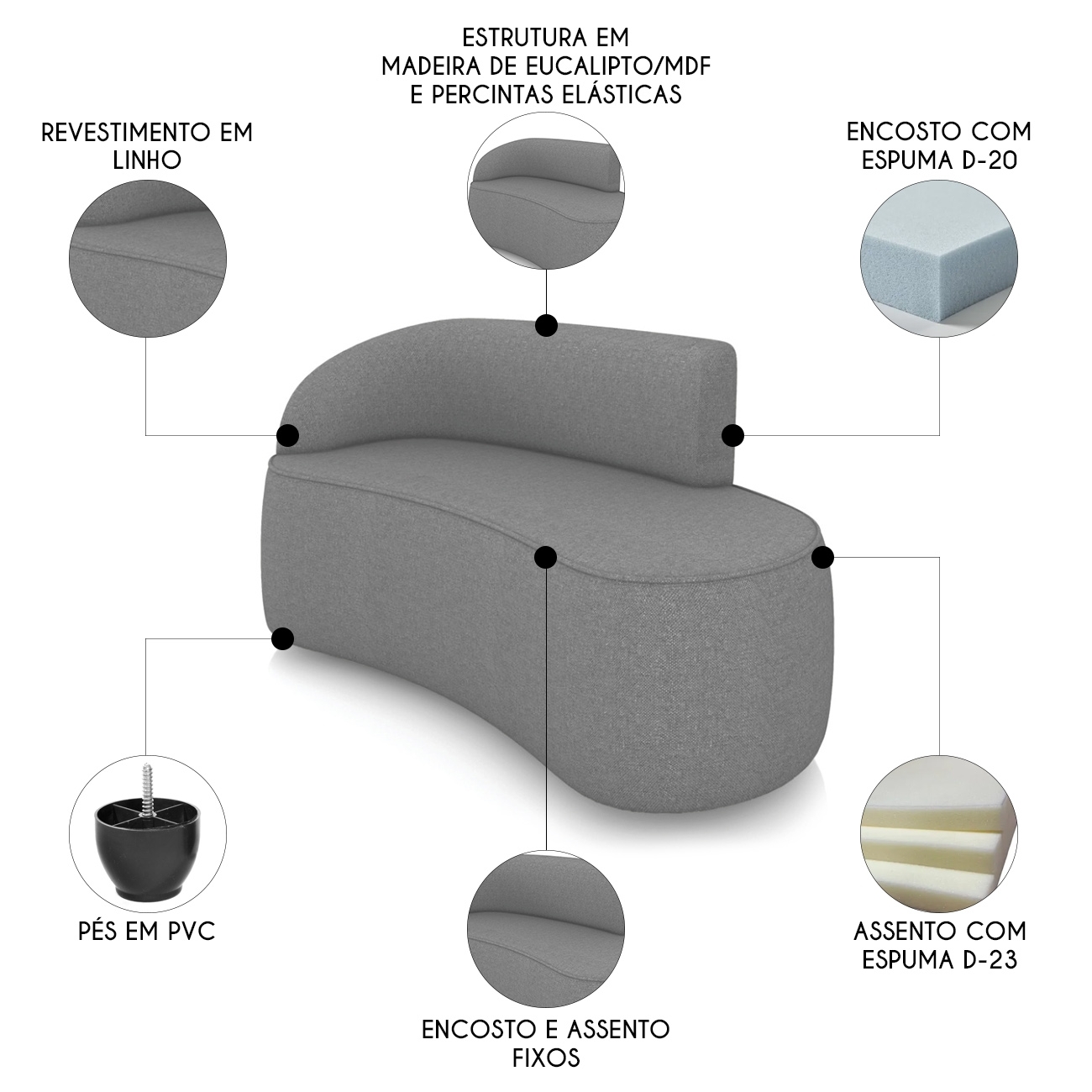 Densidade da Espuma: Assento D-23/Encosto D-20.