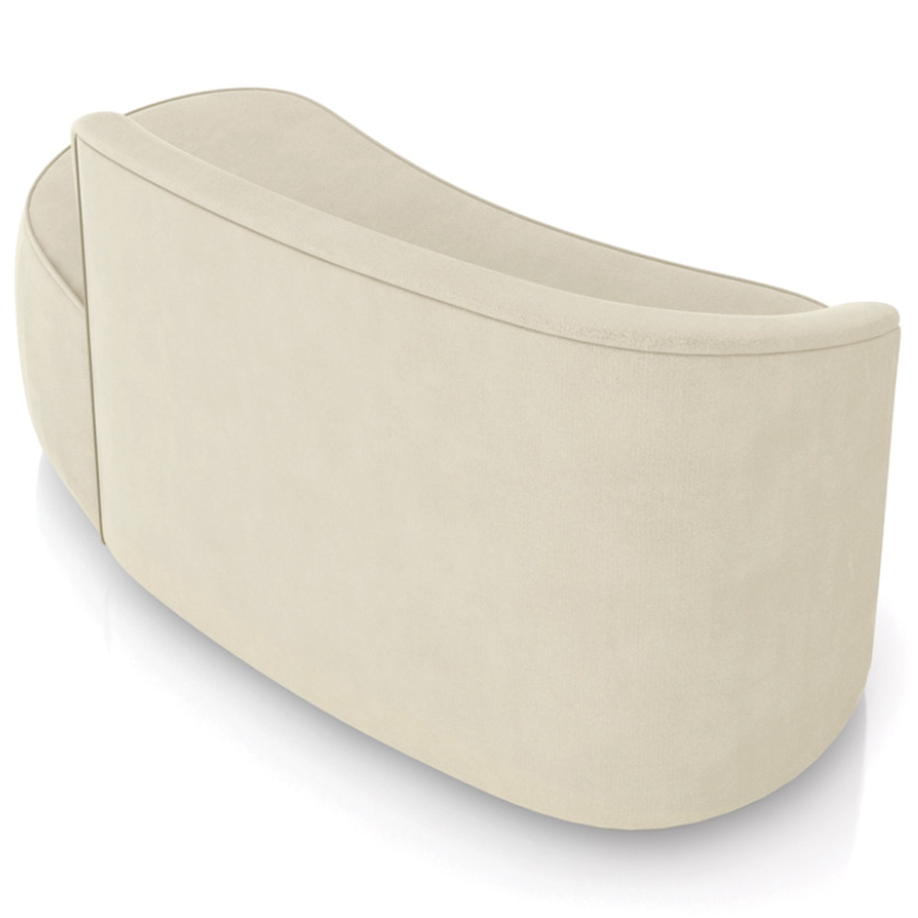 Com formato fluido e curvo, este modelo traz leveza e modernidade ao ambiente, criando um espaço acolhedor e visualmente harmônico. Sua estrutura robusta em madeira de eucalipto com MDF reforça a sensação de segurança e durabilidade no uso diário.