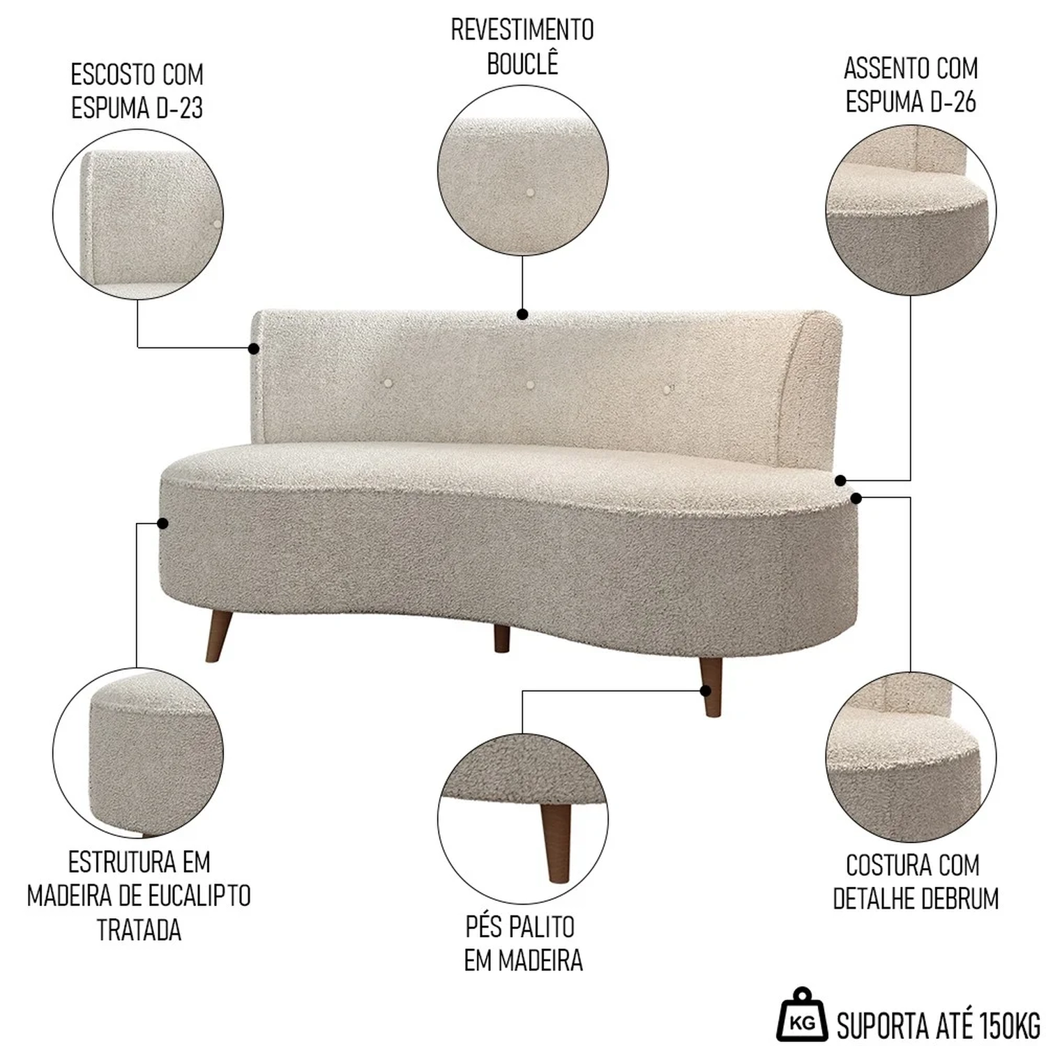 Receber os amigos e família em um ambiente elegante e confortável será uma tarefa fácil com o Sofá 2 Lugares para Sala Living 135cm Pés Palito Korah Z08 Boucle Bege, da Mpozenato. Afinal, o design curvo, os pés palito e a tapeçaria alto padrão farão com que esse sofá 2 lugares ganhe um espaço na sua sala de estar e no seu coração!