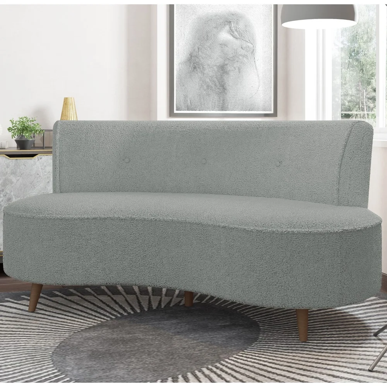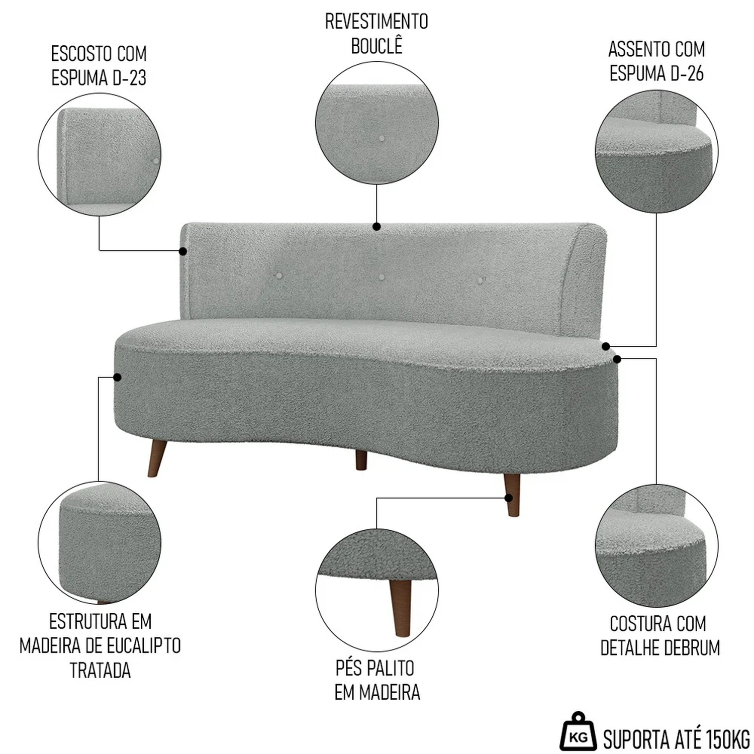 Receber os amigos e família em um ambiente elegante e confortável será uma tarefa fácil com o Sofá 2 Lugares para Sala Living 135cm Pés Palito Korah Z08 Boucle Cinza, da Mpozenato. Afinal, o design curvo, os pés palito e a tapeçaria alto padrão farão com que esse sofá 2 lugares ganhe um espaço na sua sala de estar e no seu coração!