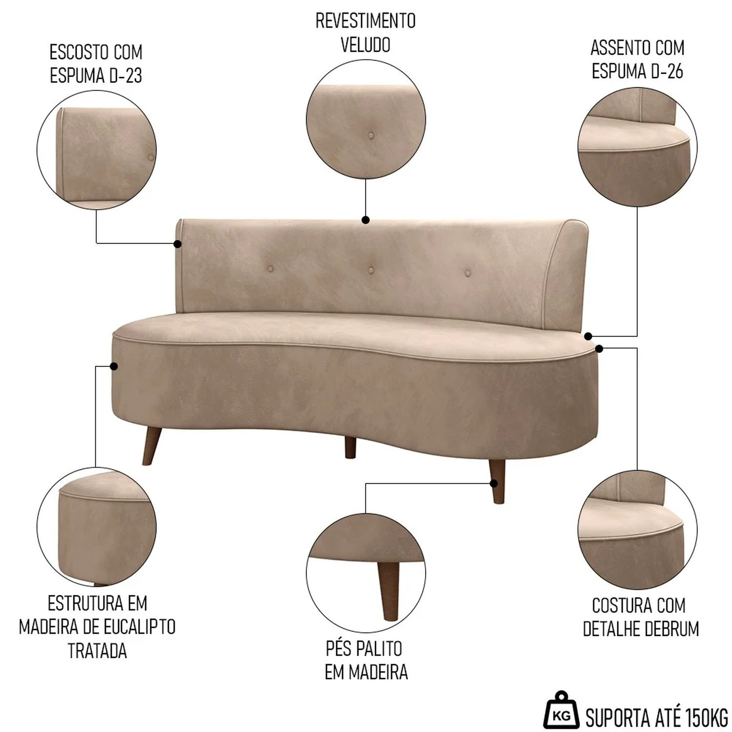 Peso Suportado: 150 kg.