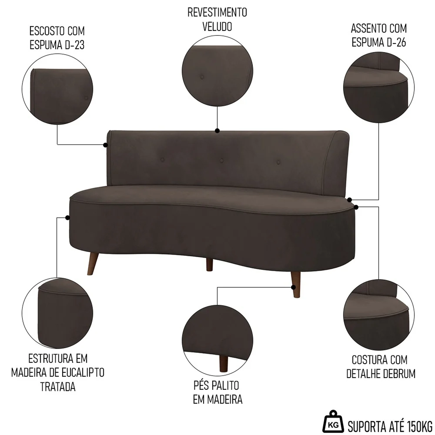 Peso Suportado: 150 kg.