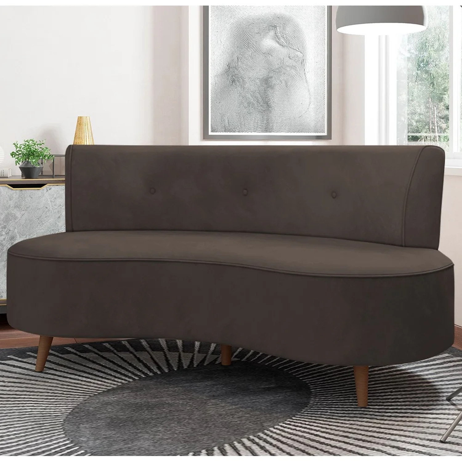 Receber os amigos e família em um ambiente elegante e confortável será uma tarefa fácil com o Sofá 2 Lugares para Sala Living 135cm Pés Palito Korah Z08 Veludo Marrom, da Mpozenato. Afinal, o design curvo, os pés palito e a tapeçaria alto padrão farão com que esse sofá 2 lugares ganhe um espaço na sua sala de estar e no seu coração!