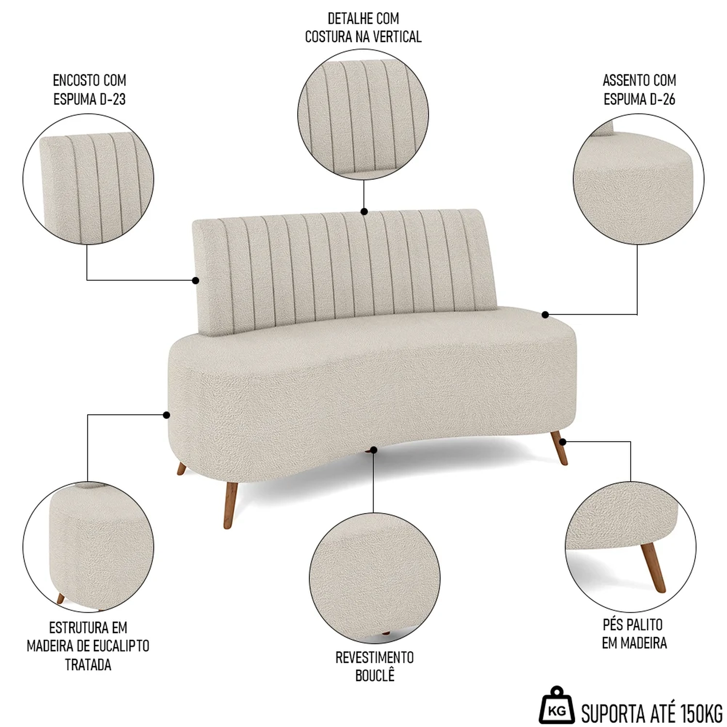 Peso Suportado: 150 kg.