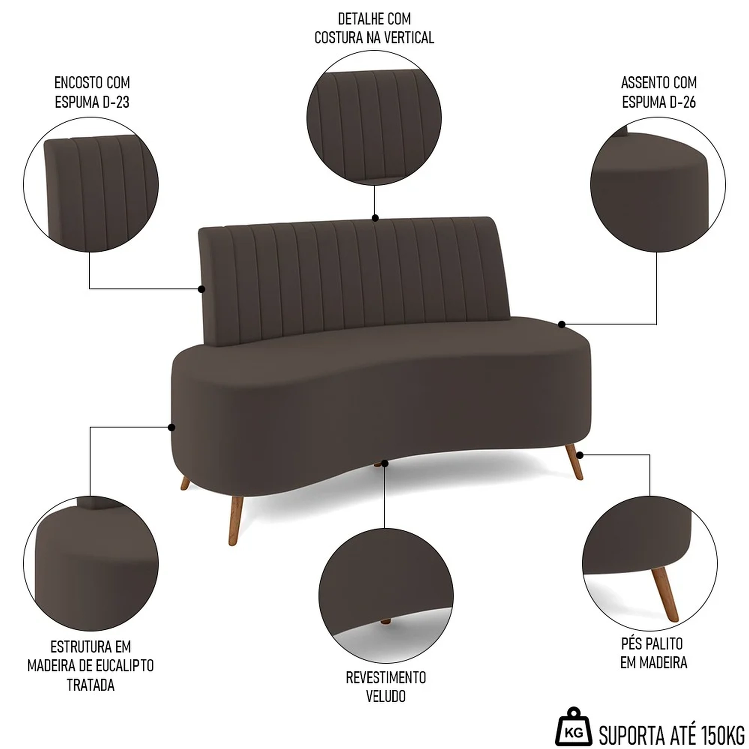 Moderno, elegante, versátil e funcional - esses são apenas alguns dos adjetivos que melhor definem o Sofá 2 Lugares para Sala Living 160cm Pés Palito Tamar Z08 Veludo Marrom, da Mpozenato.
