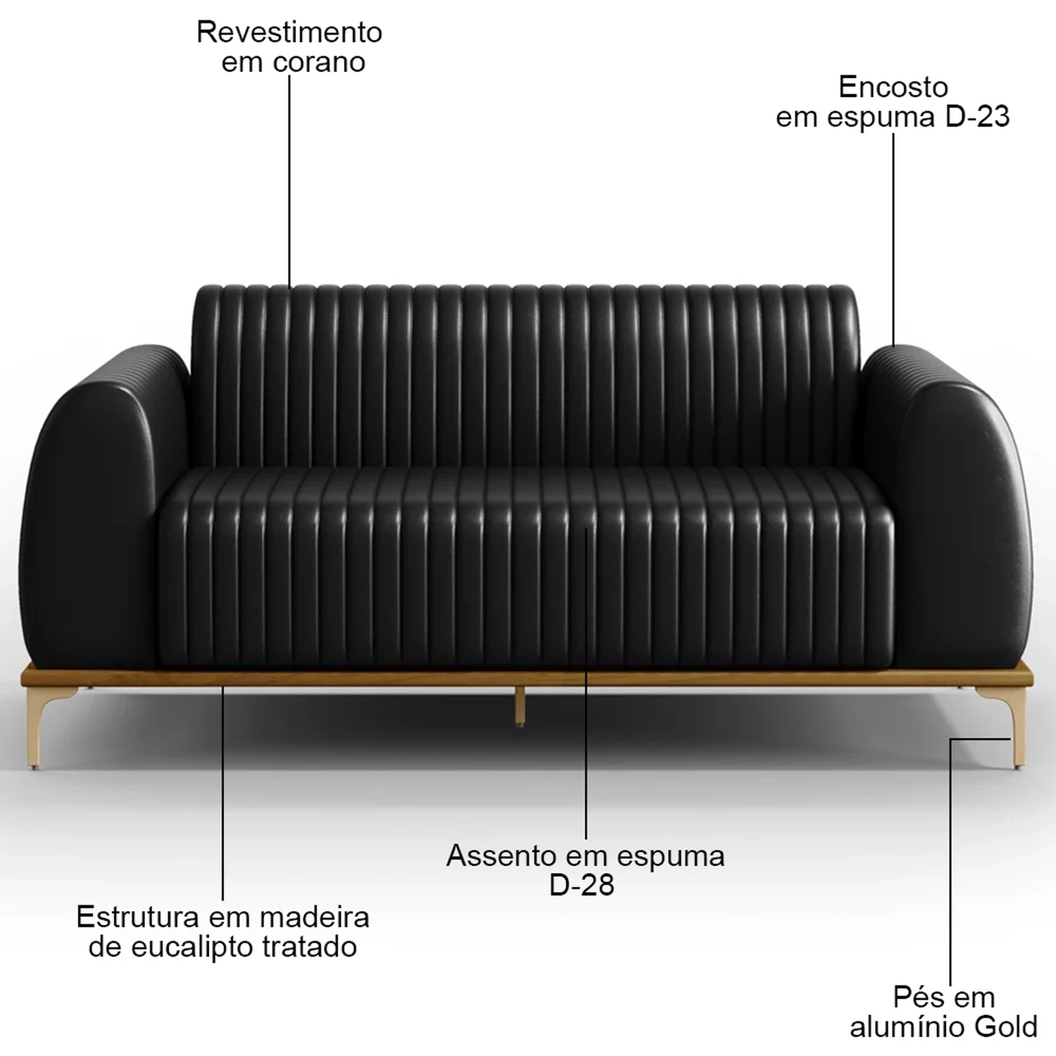 Material do Estofado: Encosto: Espuma D-23/ Assento: Espuma D-28.