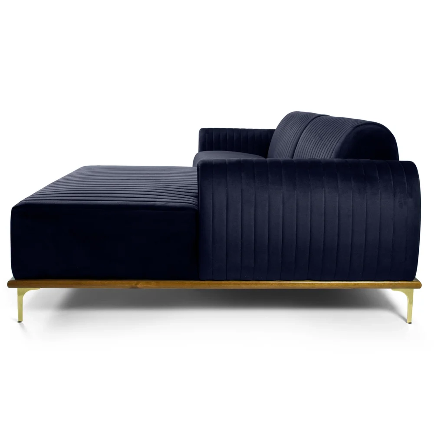 Sofá 230cm 4 Lugares com Chaise Direito Pés Gold Molino C-287 Veludo Marinho - Domi 660043027
