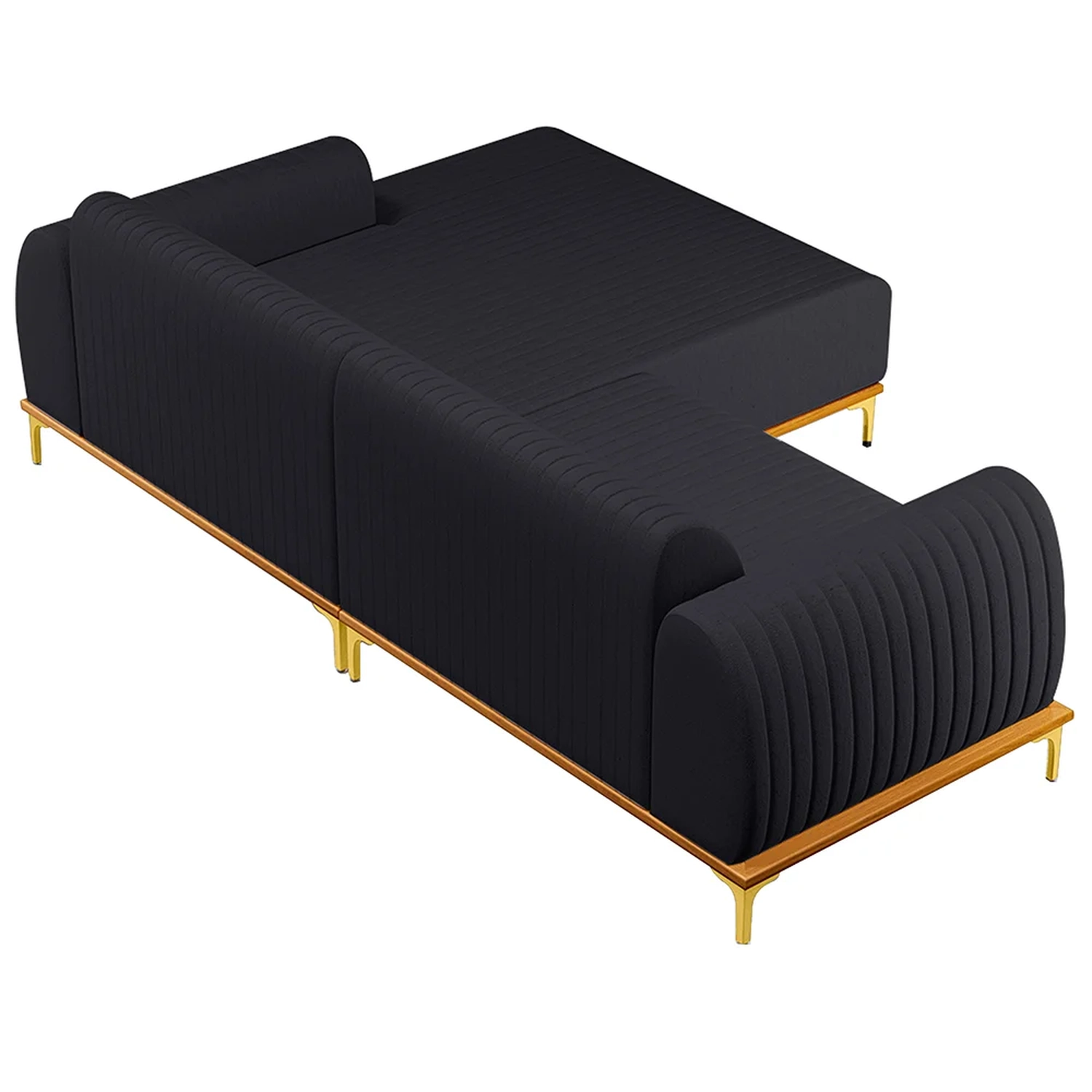 Sofá 255cm 4 Lugares com Chaise Direito Pés Gold Molino D-465 Linho Chumbo - Domi 660044537