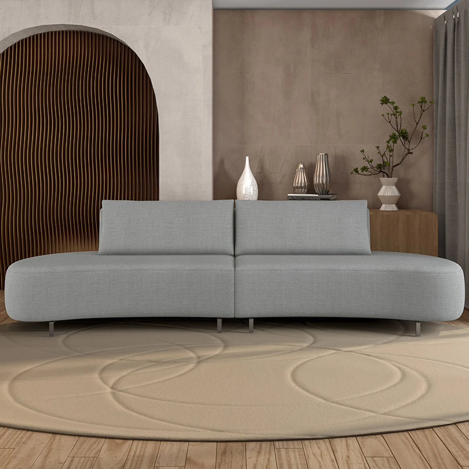 O Sofá 3 Lugares com design curvo e formas orgânicas traz sofisticação e leveza para composições modernas. Ideal para valorizar a Sala de Estar com um visual contemporâneo e cheio de personalidade.