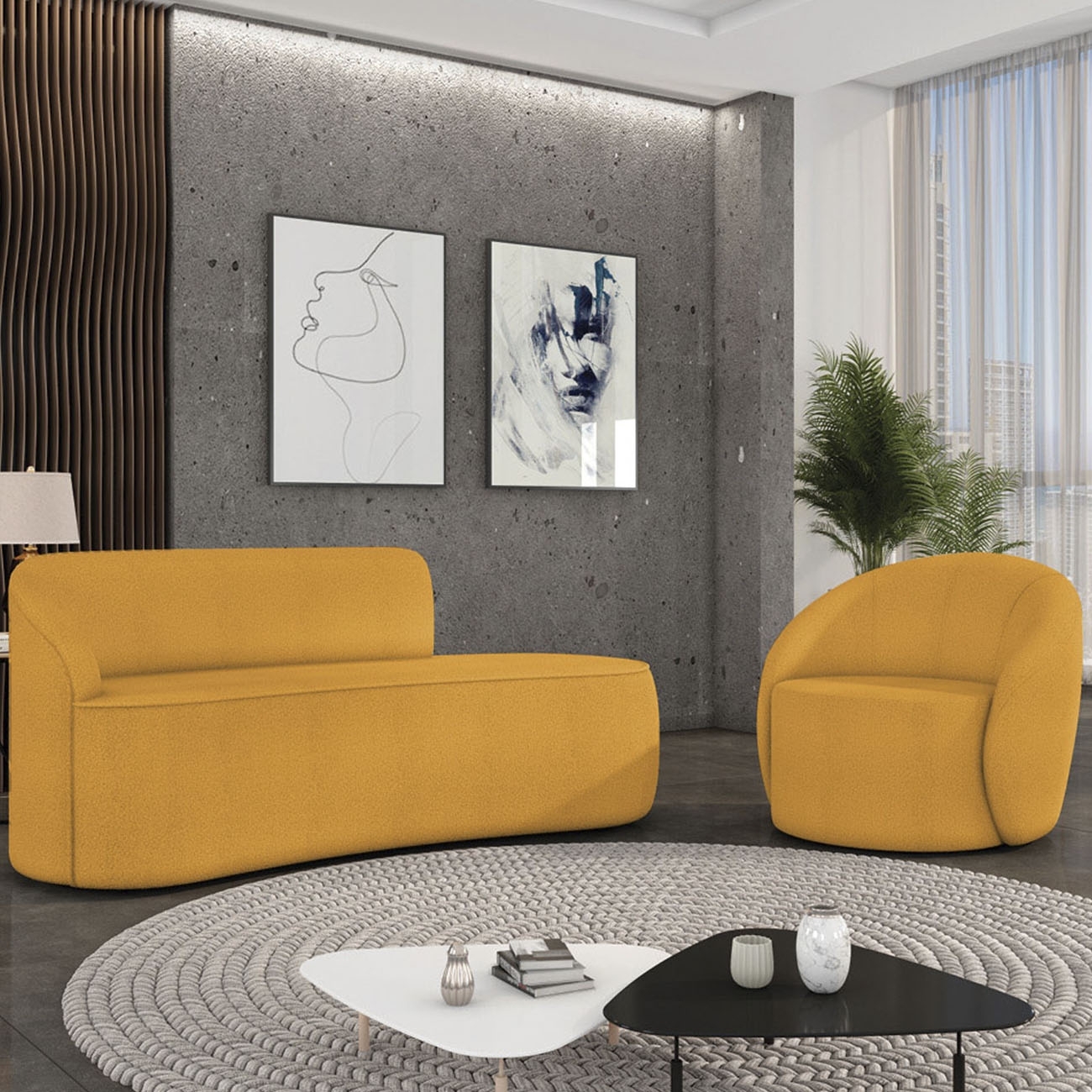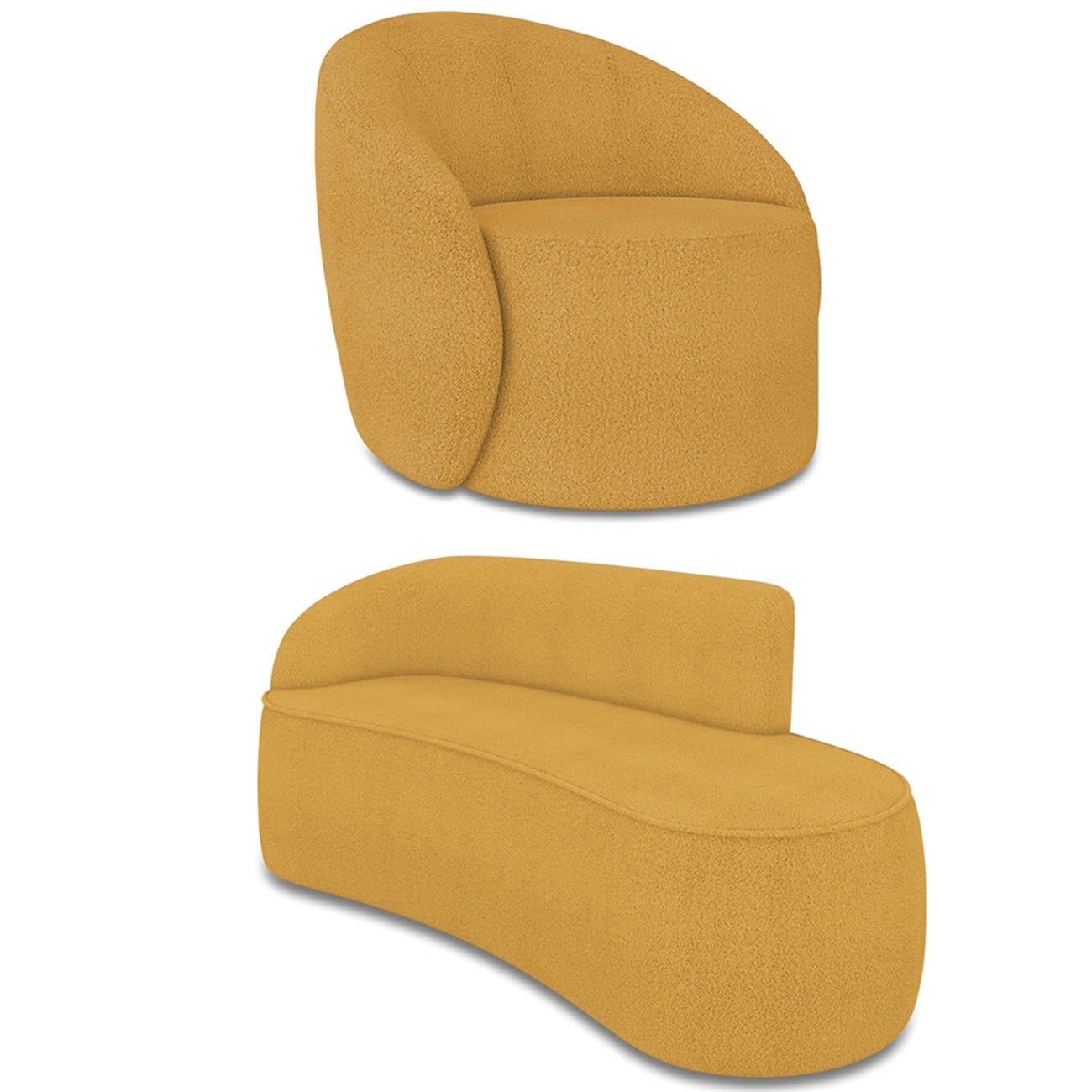 Sofá 3 Lugares 180cm Wendi e Poltrona Steve Boucle Mostarda I01 - Mpozenato
