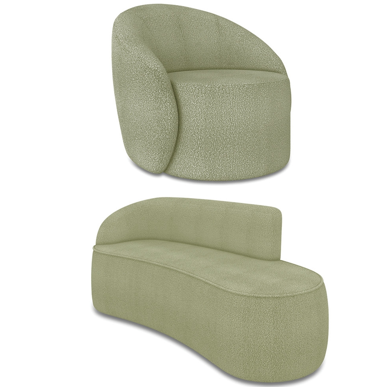 Sofá 3 Lugares 180cm Wendi e Poltrona Steve Boucle Pistache I01 - Mpozenato