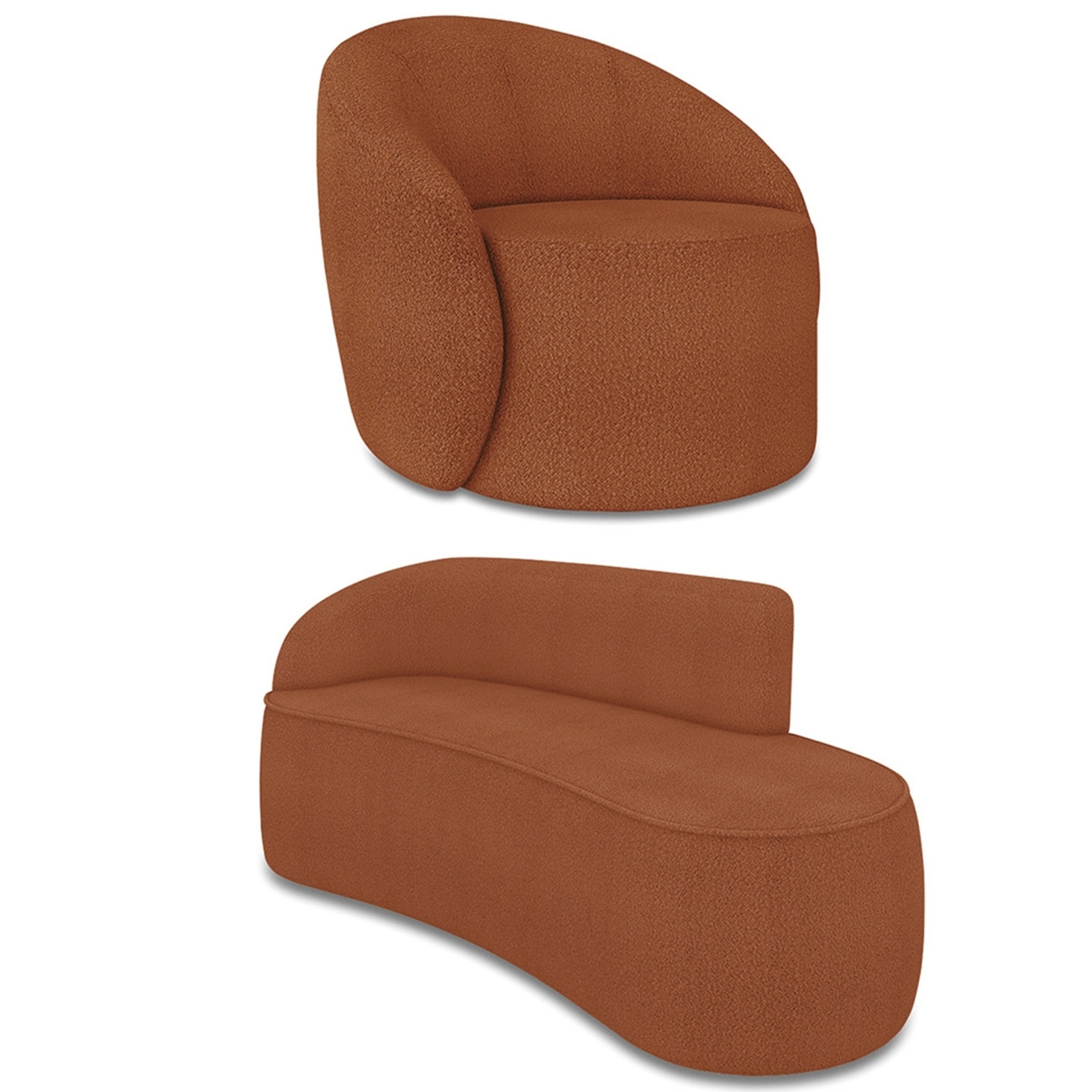 Sofá 3 Lugares 180cm Wendi e Poltrona Steve Boucle Terracota I01 - Mpozenato