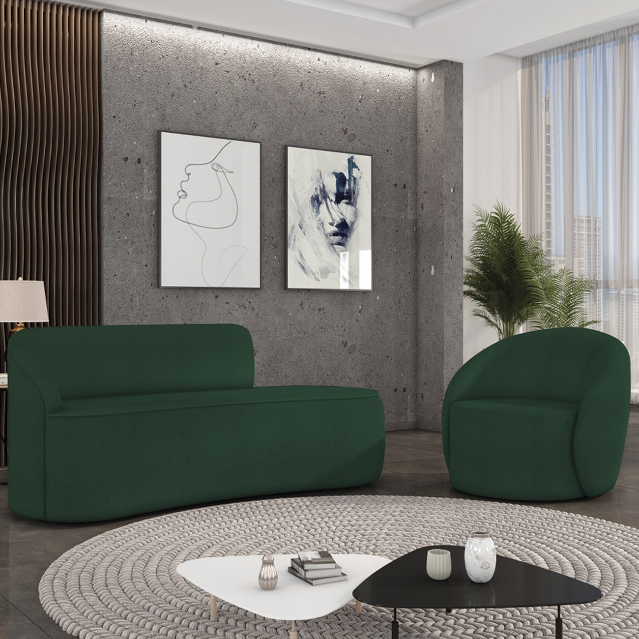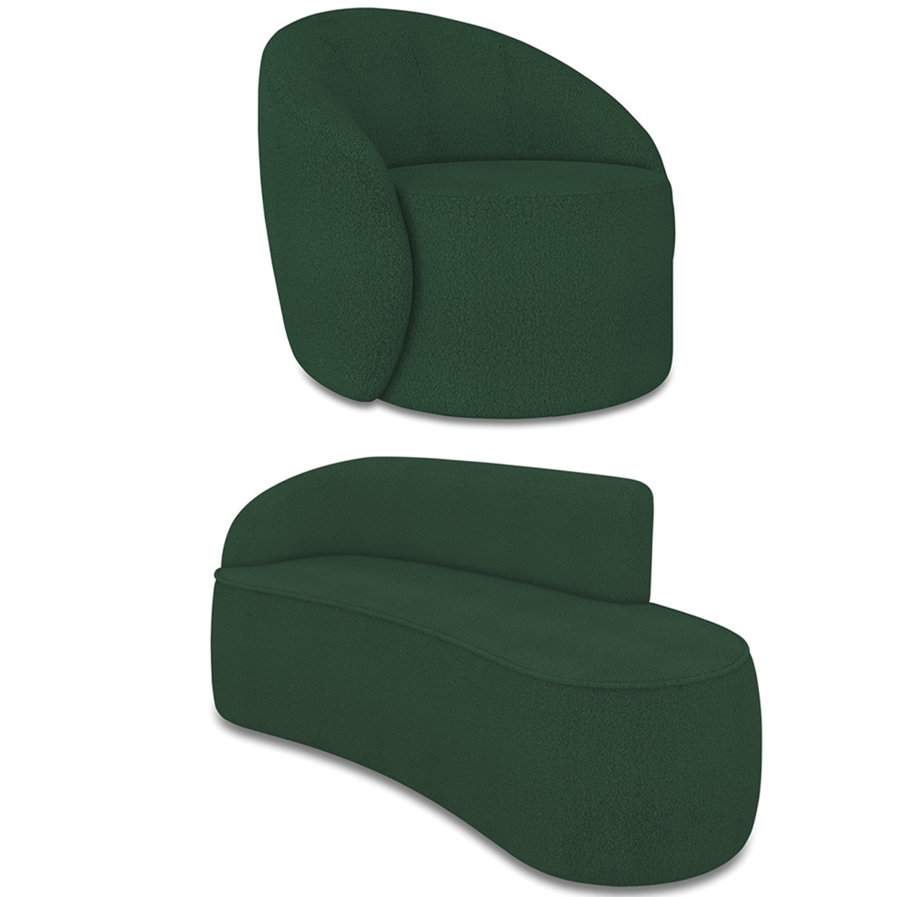 Sofá 3 Lugares 180cm Wendi e Poltrona Steve Boucle Verde I01 - Mpozenato