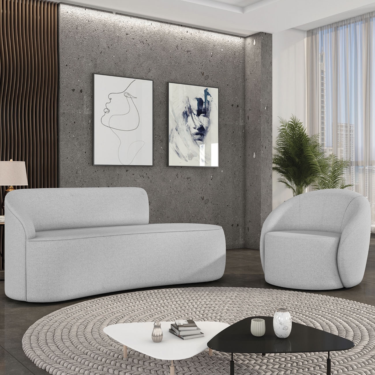 Sofá 3 Lugares 180cm Wendi e Poltrona Steve Linho Cinza I01 - Mpozenato