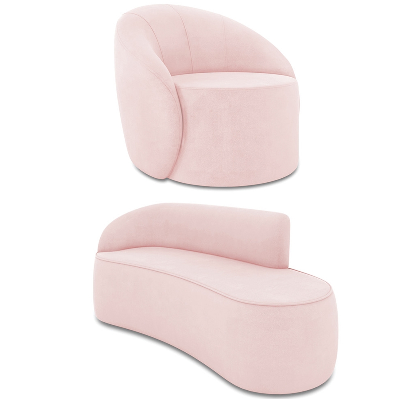 Sofá 3 Lugares 180cm Wendi e Poltrona Steve Suede Rosa Bebê I01 - Mpozenato