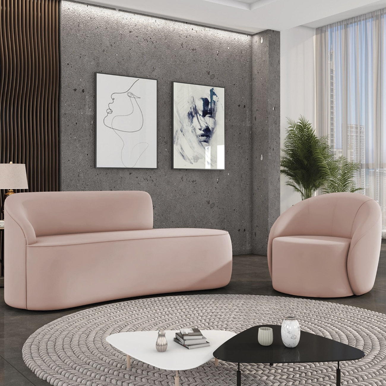 Com o mesmo design inspirado nas formas orgânicas, a poltrona valoriza o espaço com leveza e equilíbrio visual. Seu formato curvo envolve o corpo com suavidade, criando um ambiente com Poltrona Decorativa e Ambiente Sofisticado em perfeita sintonia com a proposta contemporânea.