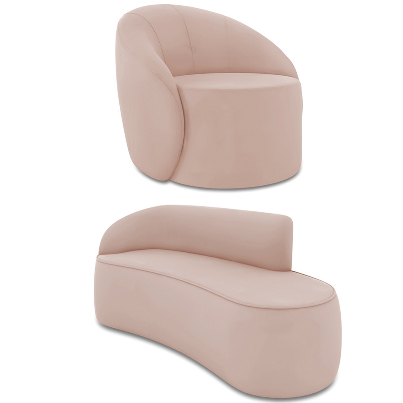 Sofá 3 Lugares 180cm Wendi e Poltrona Steve Veludo Rose I01 - Mpozenato