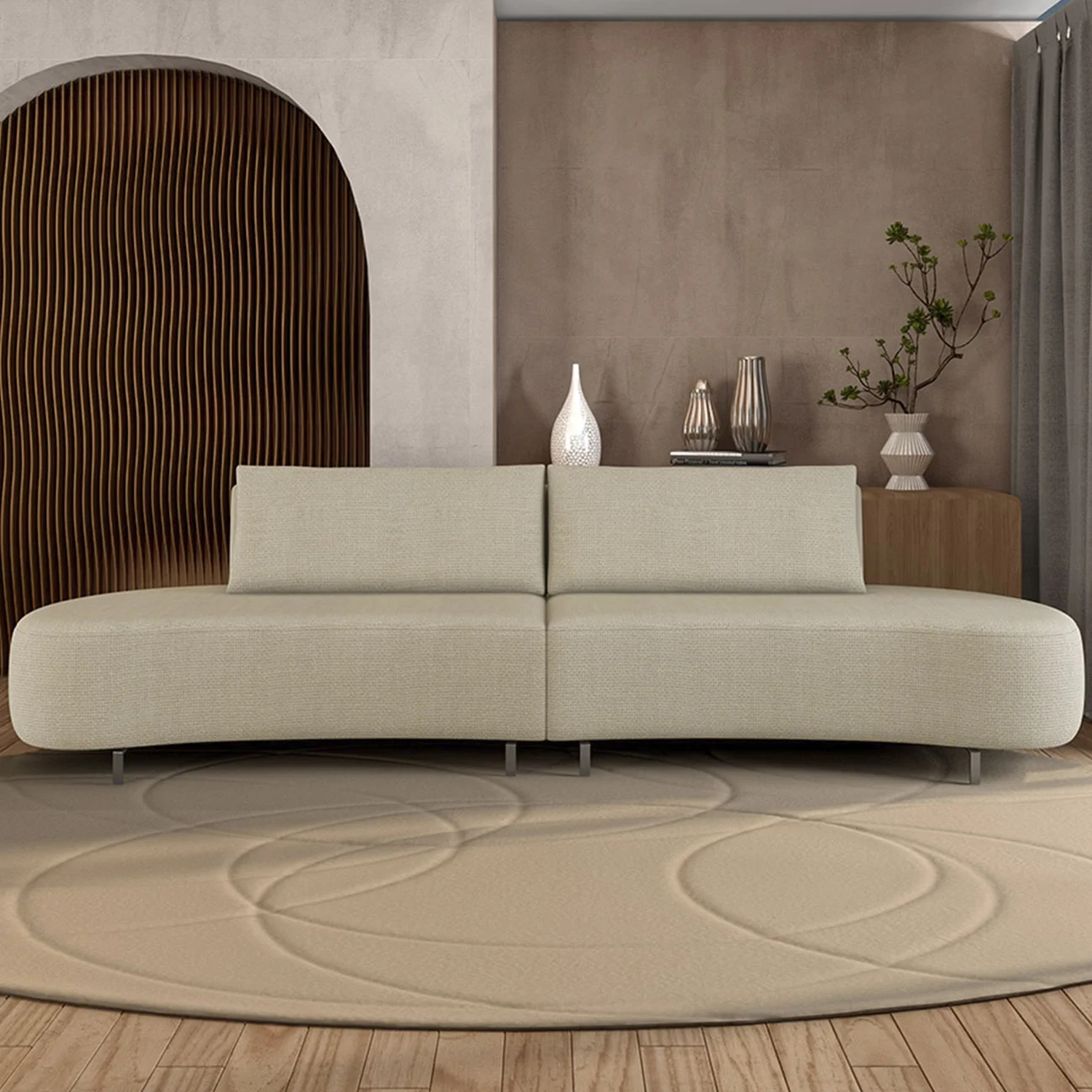 O Sofá 3 Lugares com design curvo e formas orgânicas traz sofisticação e leveza para composições modernas. Ideal para valorizar a Sala de Estar com um visual contemporâneo e cheio de personalidade.