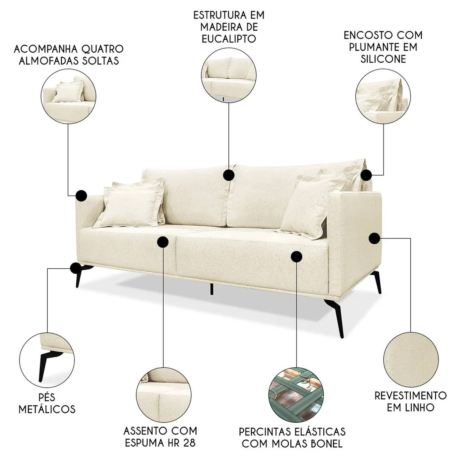 O Sofá 3 Lugares 220cm Pés de Metal Vecchia S06 Linho Pérola, da Mpozenato é uma escolha excelente para quem procura conforto, qualidade e design contemporâneo.