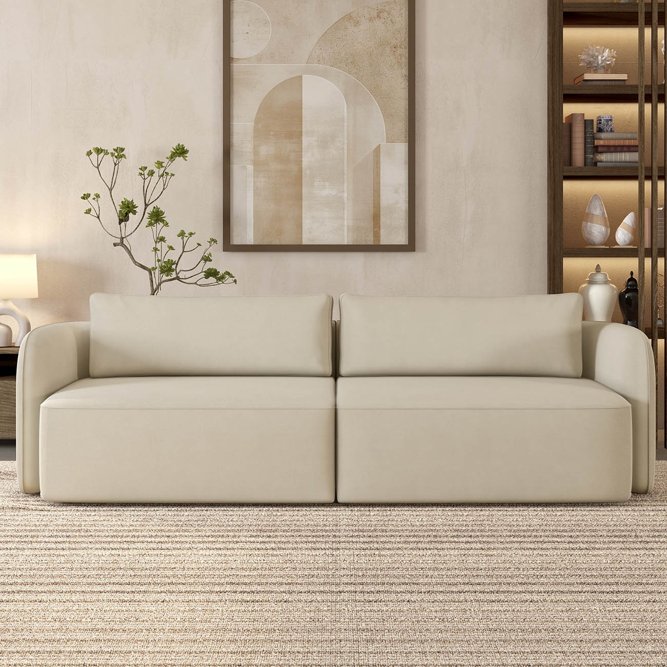 Sofá 3 Lugares 220cm Sala de Estar Karib Veludo Bege Z08 - Mpozenato