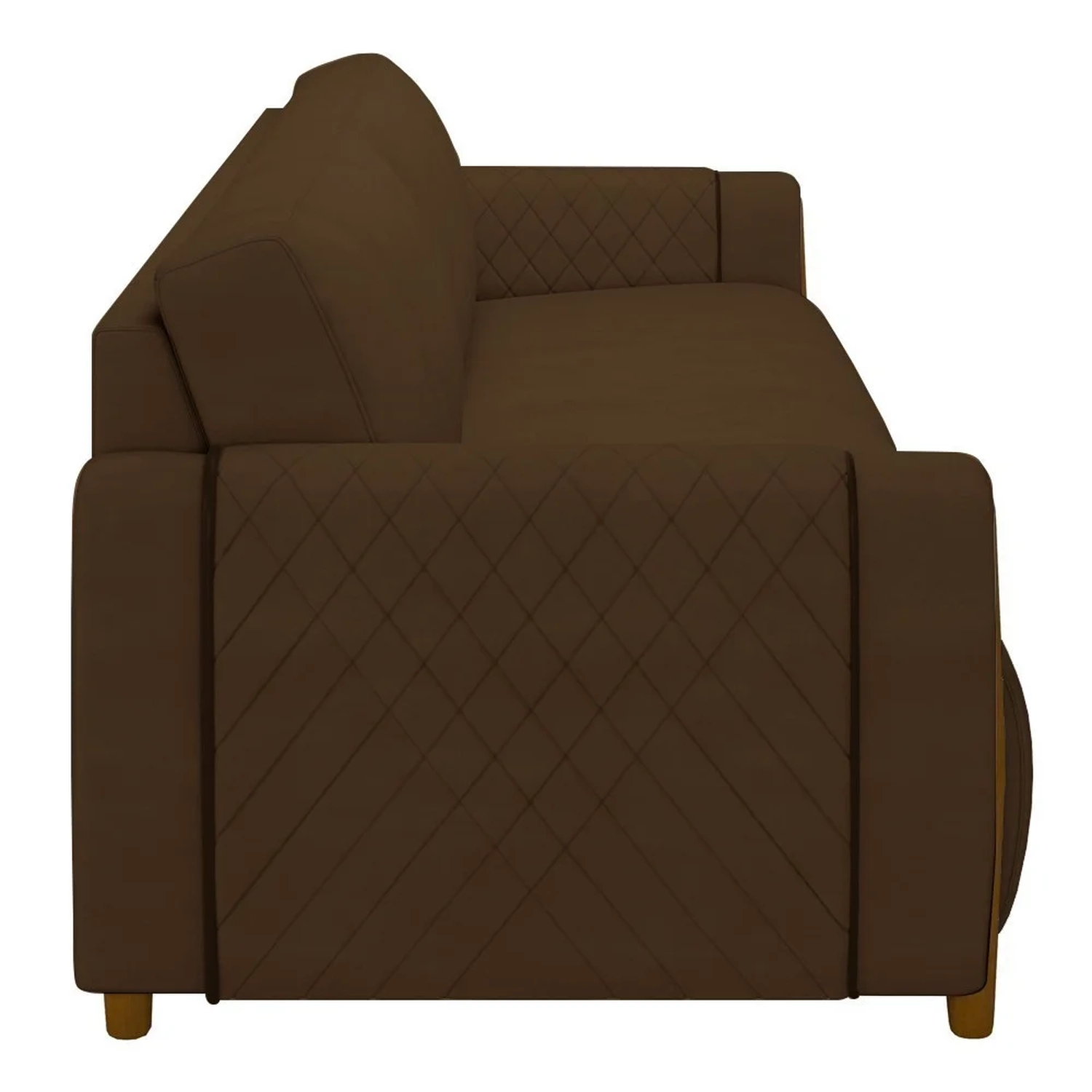 Elegância e sofisticação são os sinônimos do Sofá 3 Lugares Amaranto Veludo Marrom, da Mpozenato. Com um design clássico, esse sofá para sala combina materiais e texturas para criar um produto atemporal. Já os detalhes dos braços em tressê agregam delicadeza e charme.