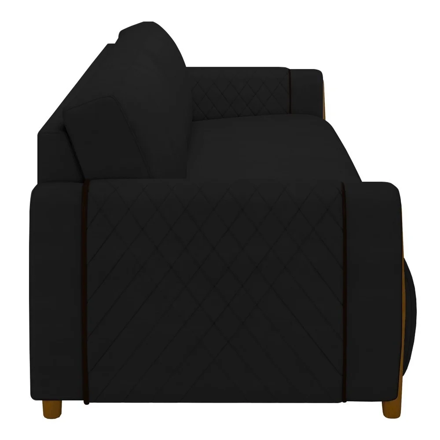 Elegância e sofisticação são os sinônimos do Sofá 3 Lugares Amaranto Veludo Preto, da Mpozenato. Com um design clássico, esse sofá para sala combina materiais e texturas para criar um produto atemporal. Já os detalhes dos braços em tressê agregam delicadeza e charme.