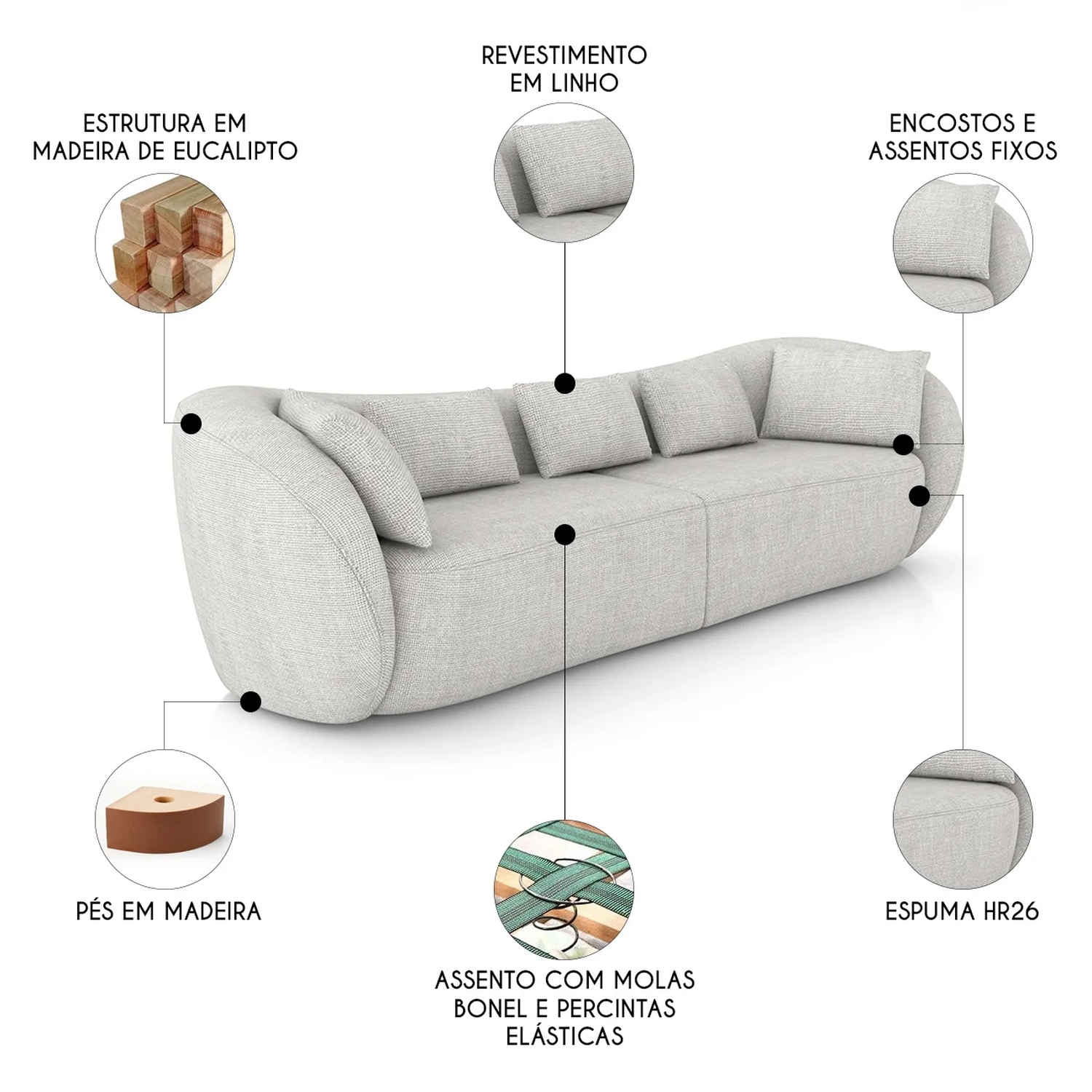 Sofá 3 Lugares 252cm Orgânico Pé Madeira Yume Linho Gelo Z55 - Mpozenato