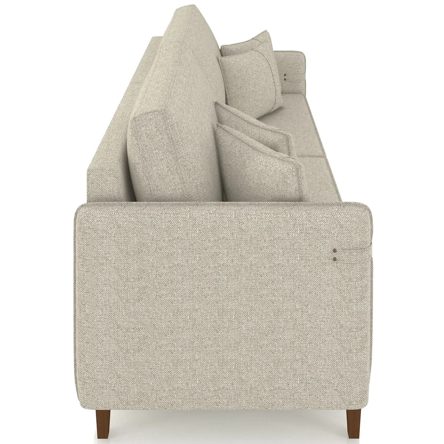 Com assento e encosto fixos, o Sofá Para Sala ainda conta com almofadas decorativas com fibra siliconada, pés em madeira e estrutura bipartida que facilita o transporte.