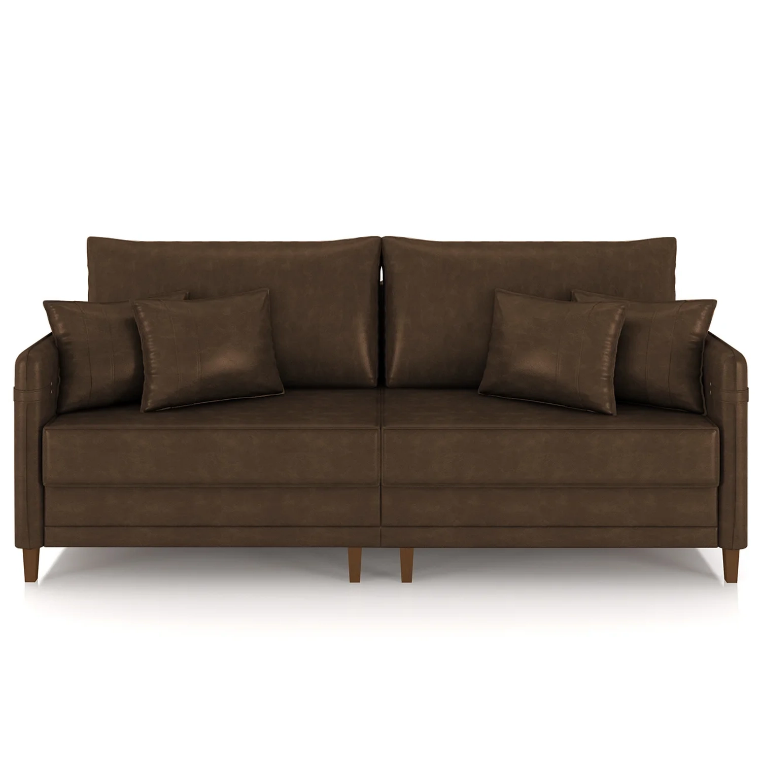 Sofá 3 Lugares Living 212cm Pé Madeira Zoe Sintético Marrom Z08 - Mpozenato