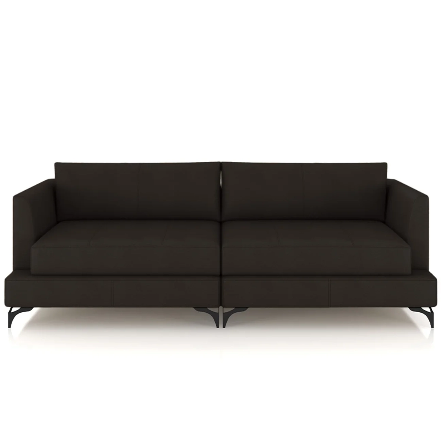 Sofá 3 Lugares Living 230cm Pé Ferro Soren Couro Marrom Z55 - Mpozenato