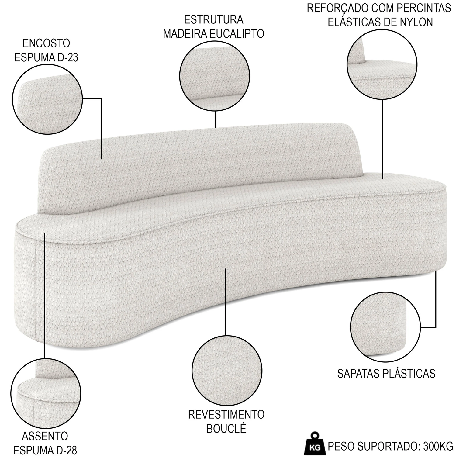 Peso Suportado: 300 kg.