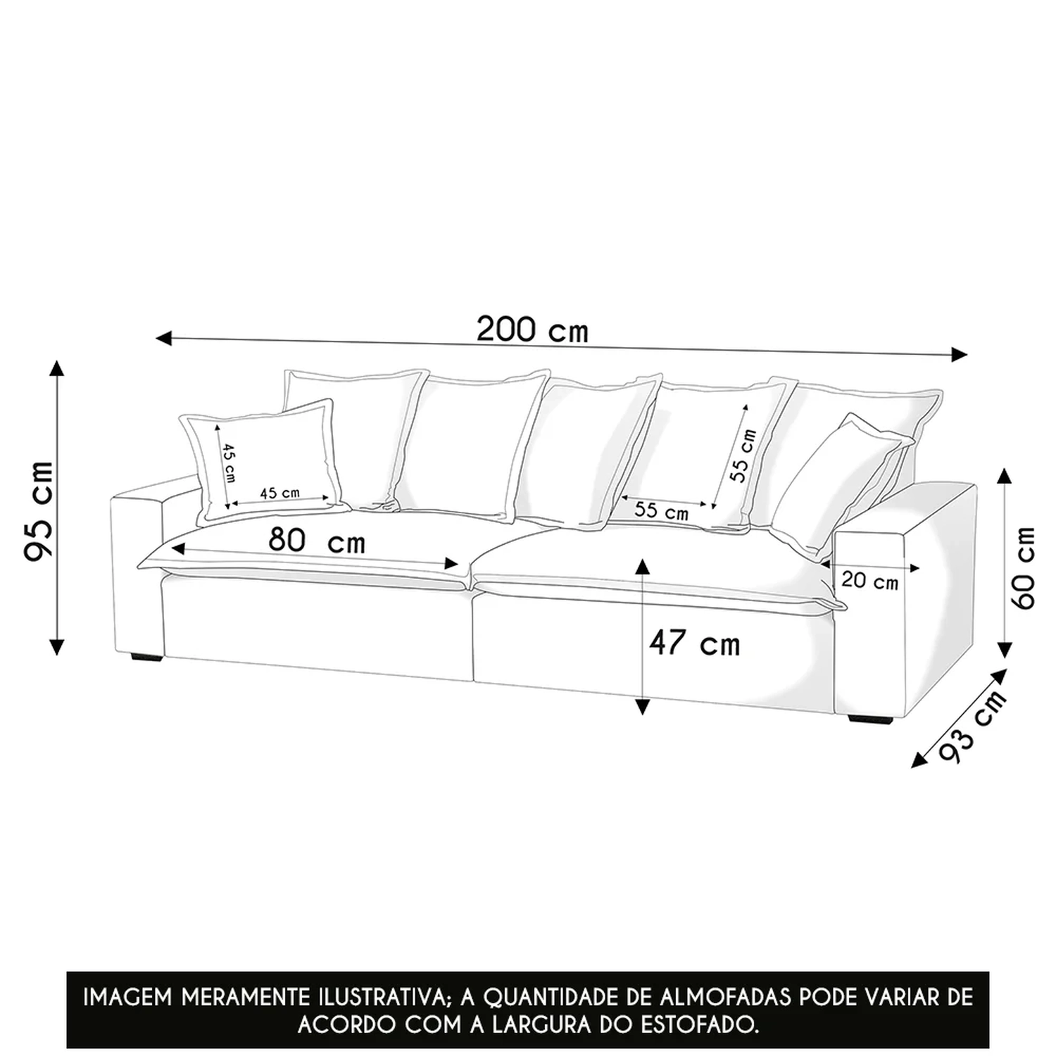 • As dimensões de estofados podem apresentar variação de até 5 cm.