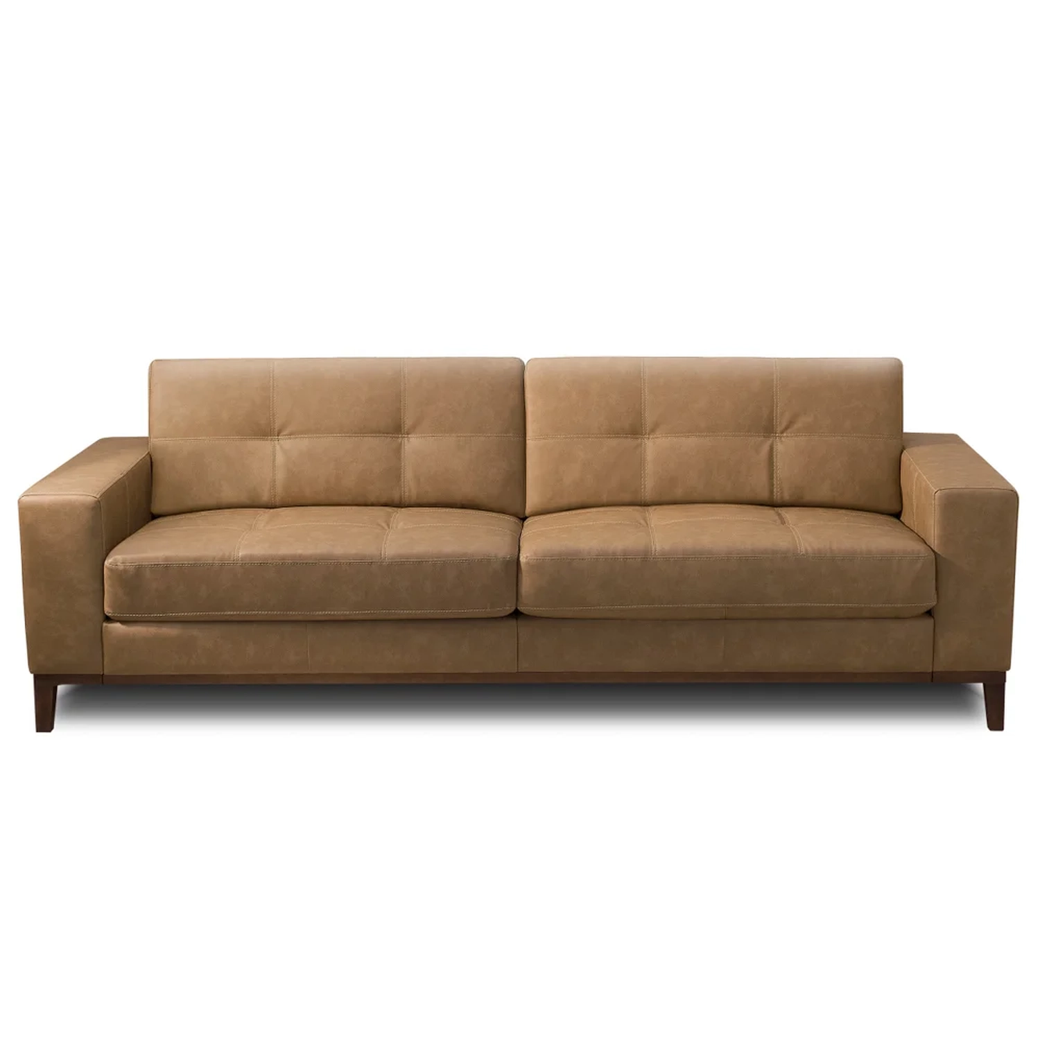 Renove o seu espaço com o Sofá 3 Lugares Para Sala Living 210cm Ronie L08 Couro Camel, da Mpozenato! Esse magnífico sofá de couro é a união perfeita entre a elegância clássica e o charme moderno.