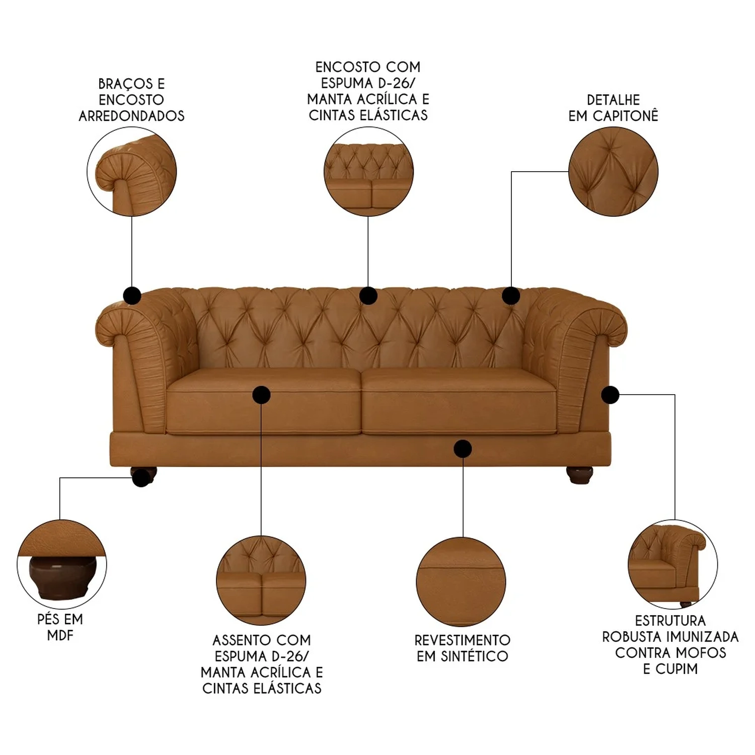 O Sofá Otto é um verdadeiro tesouro para os amantes do design clássico, pois faz referência ao sofá estilo chesterfield, que traz consigo toda a elegância e charme desse icônico modelo e se adapta perfeitamente a qualquer ambiente, proporcionando um toque de luxo e requinte ao seu living. Além disso, esse sofá 3 lugares é fabricado com materiais da mais alta qualidade, o que garante durabilidade e conforto excepcionais, ou seja, você terá um estofado macio e aconchegante, perfeito para relaxar e desfrutar de momentos de puro prazer com a família e amigos.