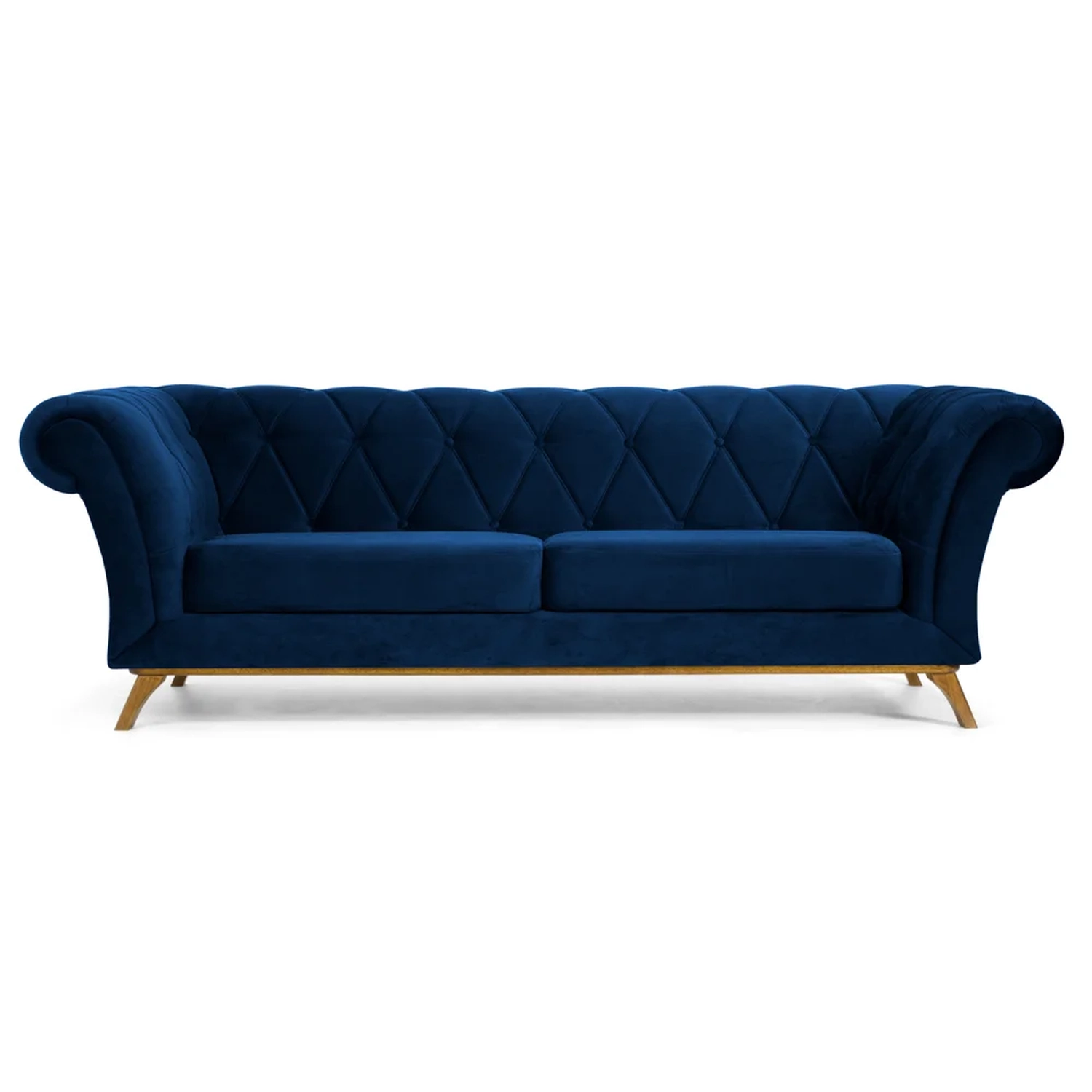 Sofá 300cm 4 Lugares Base Madeira Império C-304 Veludo Azul Marinho - Domi 78016